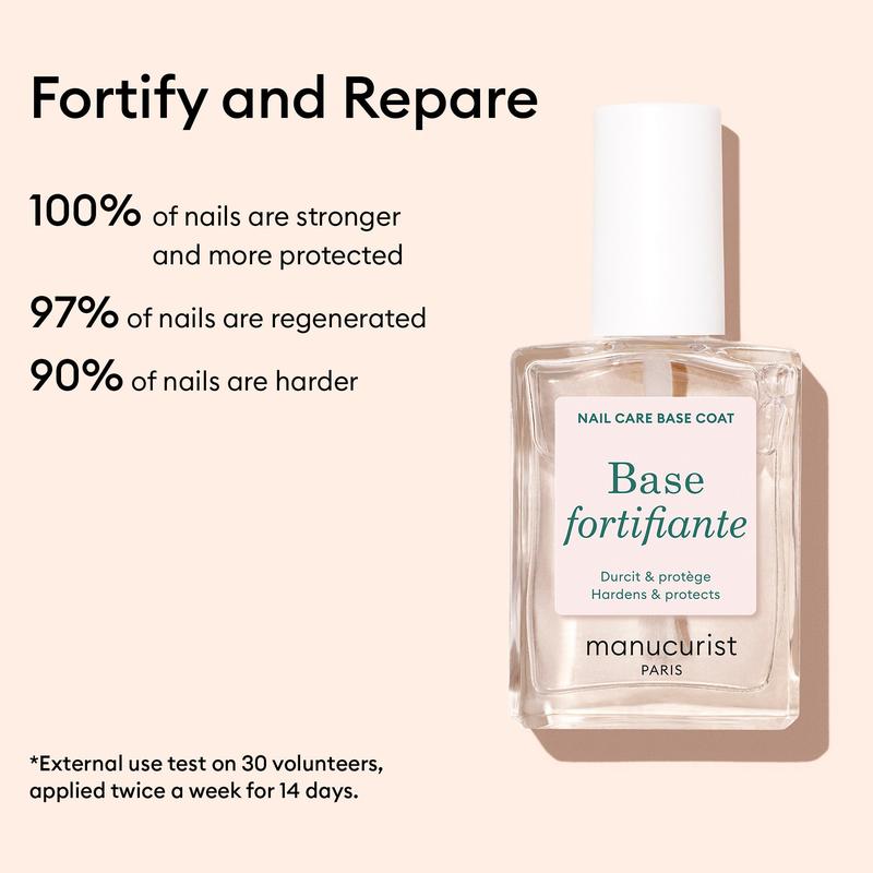 The treatment base designed to strengthen and reinforce soft, thin nails over time. The Strengthening Base is a fortifying polish enriched with AHAs, PHAs, and silica to strengthen nails from within and create a protective shield that resists everyday impacts. After just one week of use, nails are noticeably stronger and more resistant to breakage.