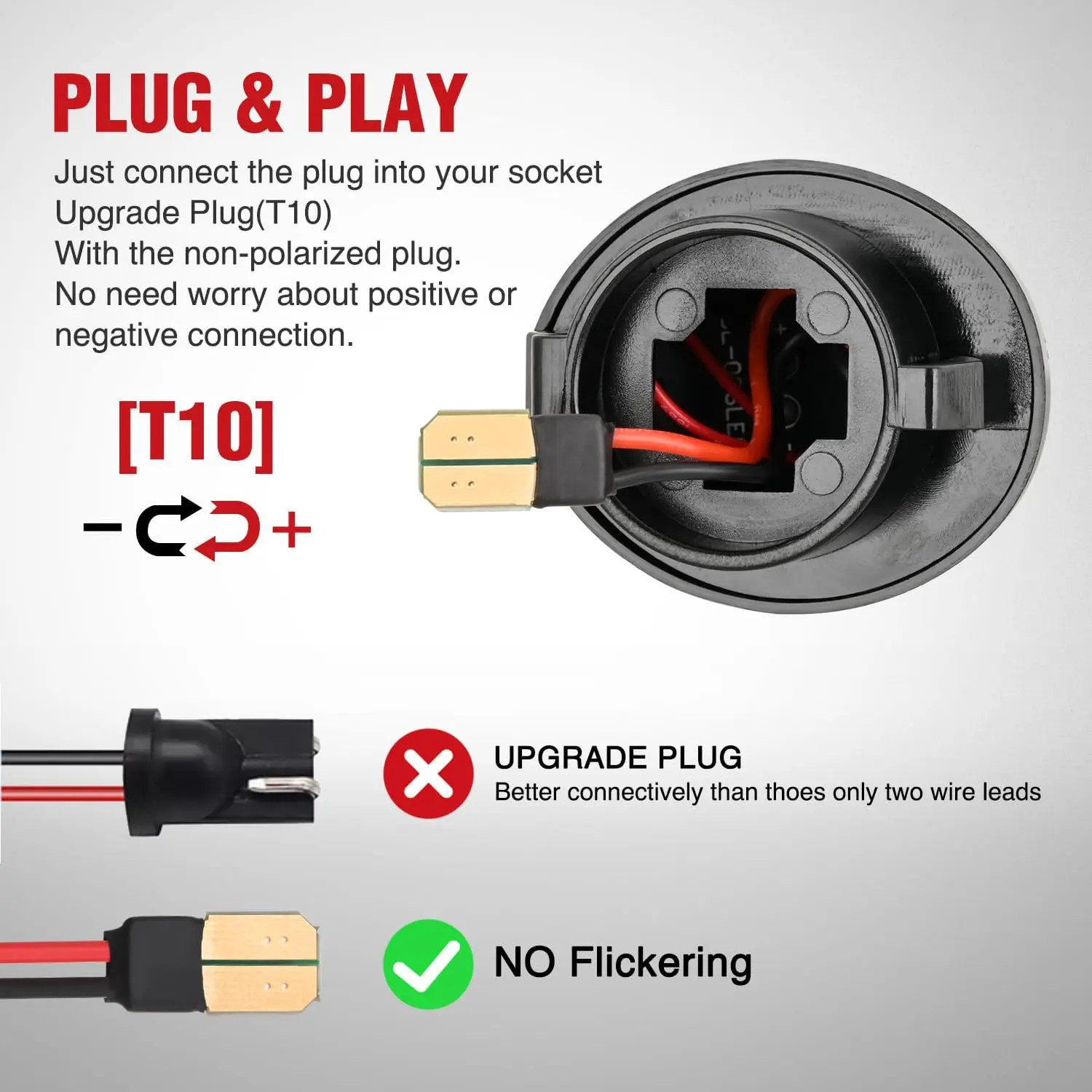 Plug and play, direct replacement for factory tag light, no just take out your original bulbs and insert the new plug into the socket. Non-Polarity, no need to worry about positive and negative connections.