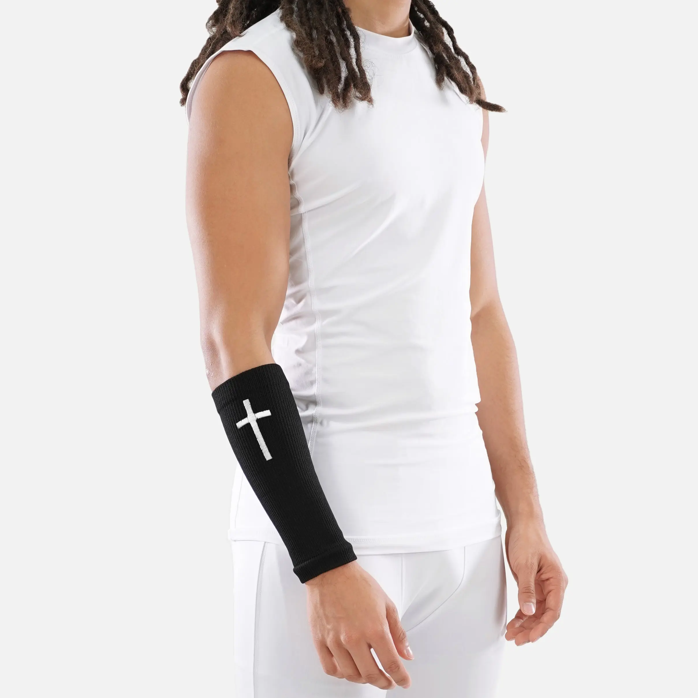 Invest in your comfort and performance with the Faith Cross White Seamless Forearm Sleeve and enjoy your activities without any limitations.