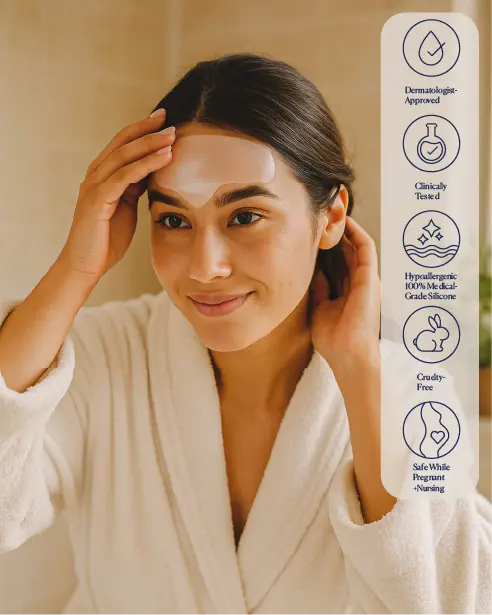 Get the look of an instant brow lift without injectables. This reusable forehead wrinkle patch targets expression lines, frown lines, and 11 lines to give you a stress-free, smoother and younger looking forehead. Made of medical-grade silicone, our brow wrinkle treatment patches hydrate and smooth the skin. Regular use helps prevent deeper creases. Each pack holds 1 Forehead Patch.