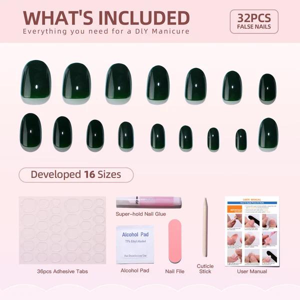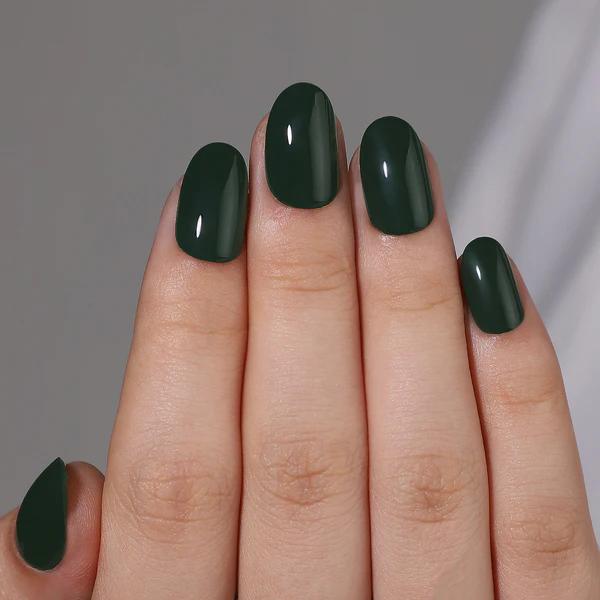Forest Green Gloss Press On Nails | CurvLife Nail | 24pcs Medium Oval Fake Nails | Sleek Finish with Deep Forest Hue & Gentle Gloss | Easy to Apply, Comfortable & Long-Lasting | Ideal for Nature Trips, Art Gatherings, Chic Dinners & Stylish Events