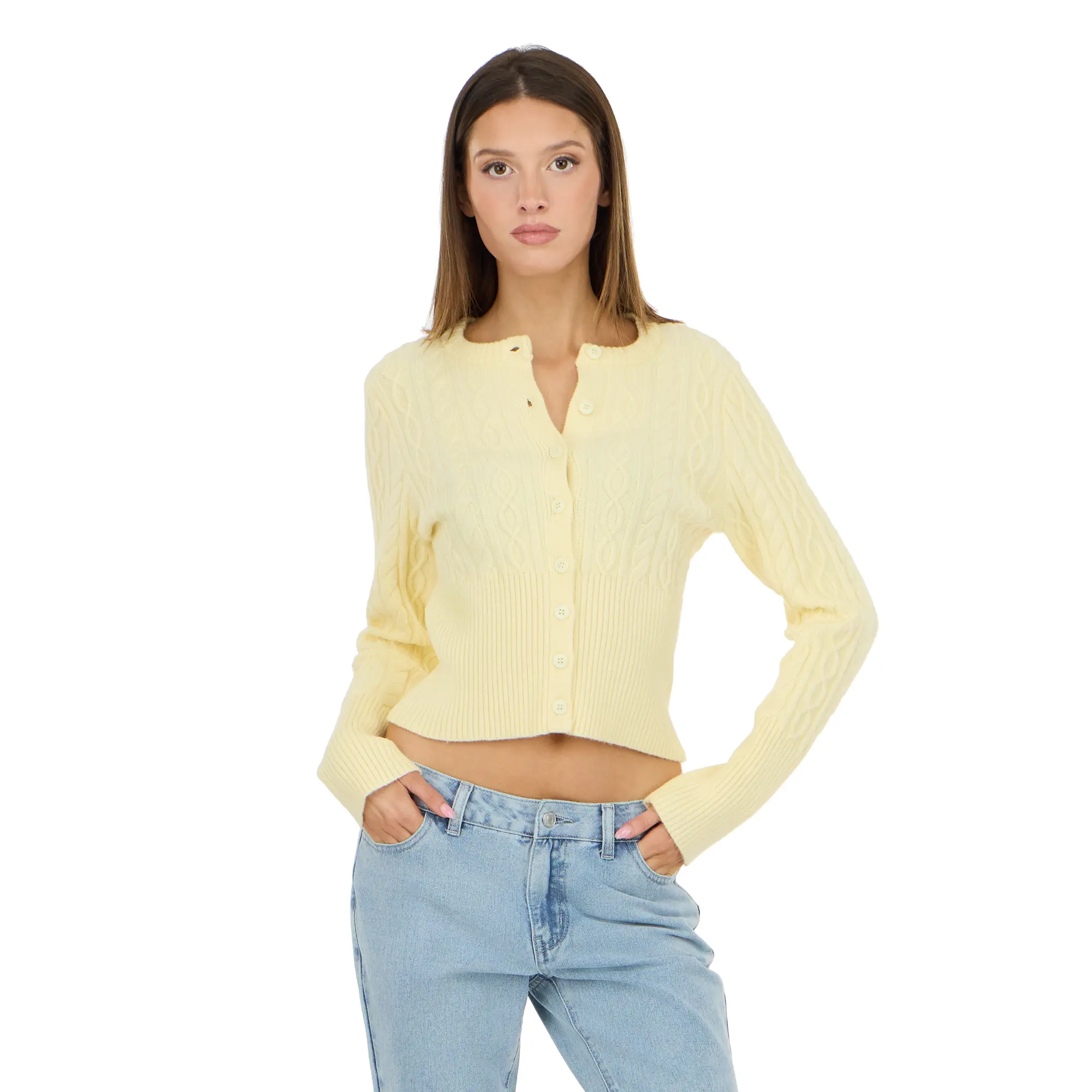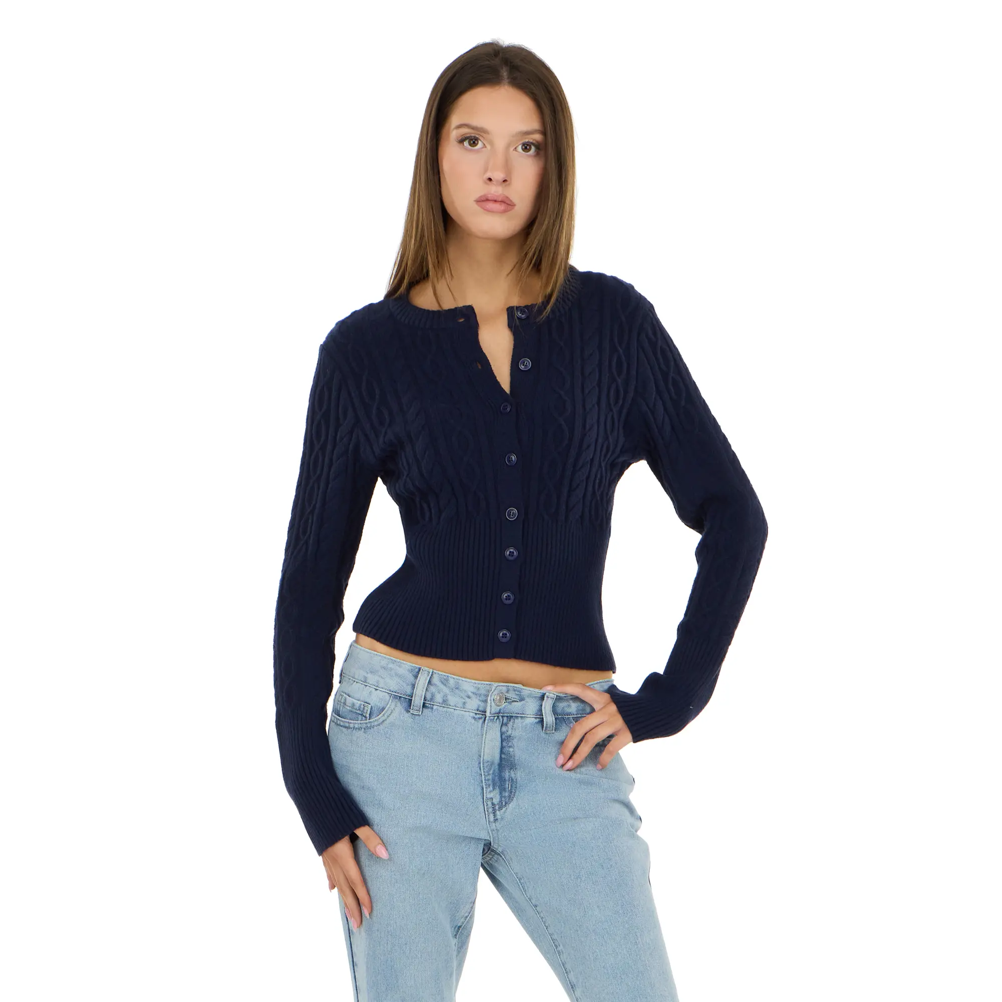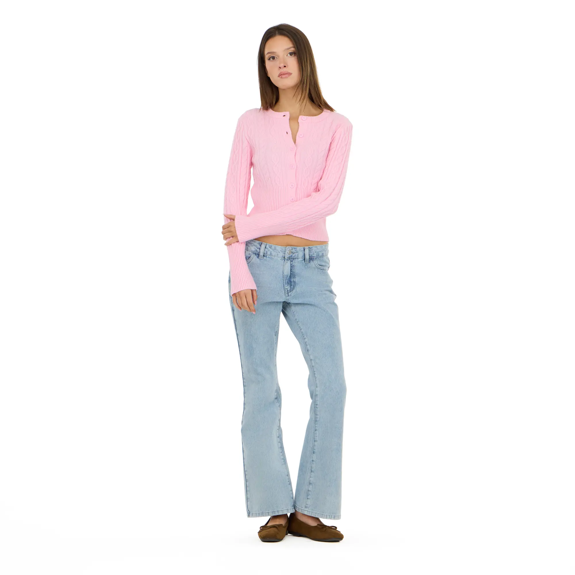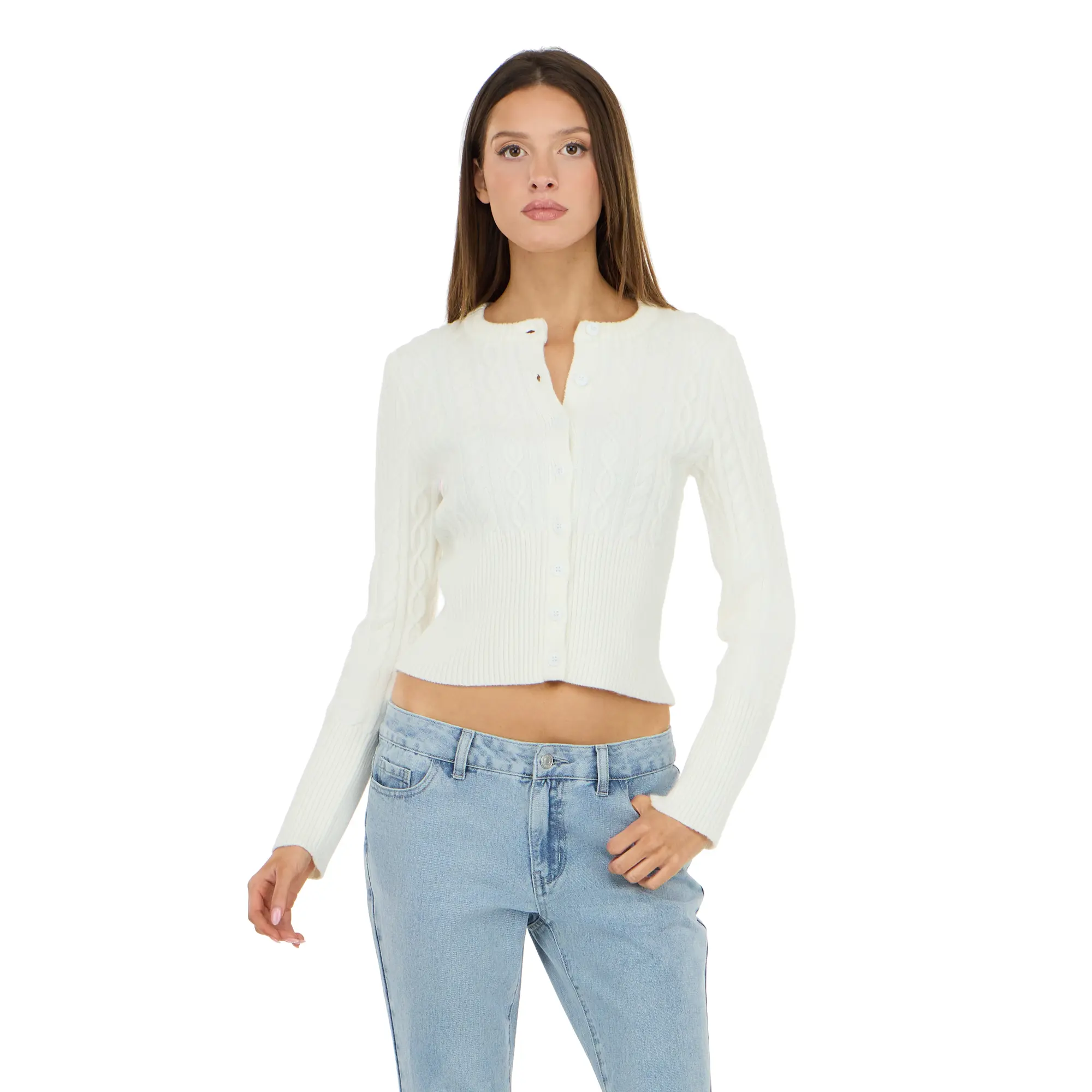 Elevate your everyday style with the Forever 21 Women’s Cable Knit Fitted Cardigan.