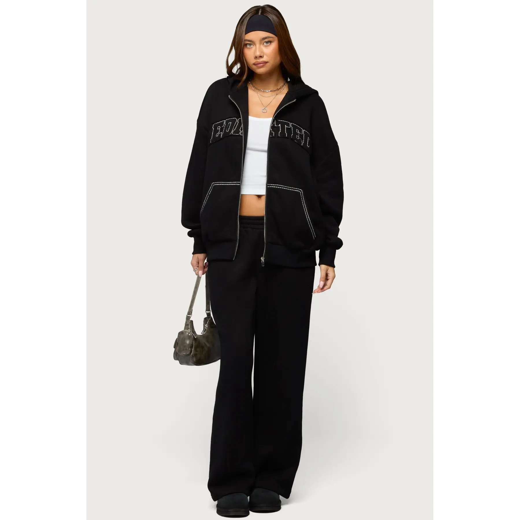 Zip up - small, bottoms - xs (coulda did small) .. I'm 5'4 135 ❤️‍🔥 get it girl! @Edikted #edikted #tiktokshopcreatorpicks #zipuphoodie #sweatpantsoutfit #tiktokshopstockup