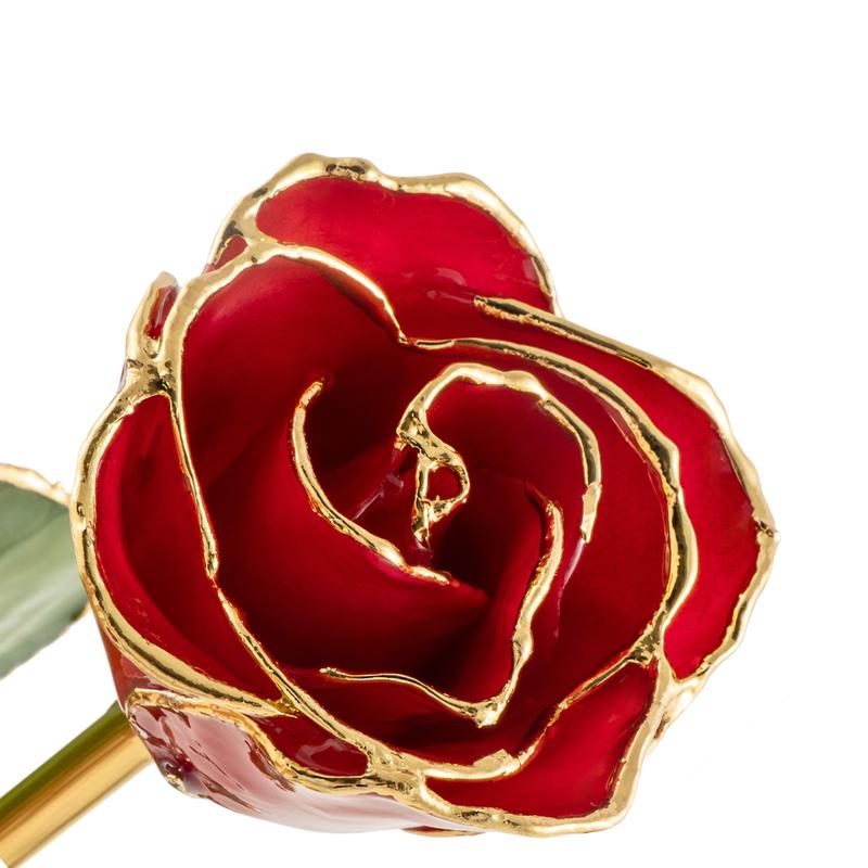 ·A Real Rose Dipped in Real 24K GoldYour 24K Gold Forever Rose is handmade in small batches using a real rose selected at peak bloom and preserved in a durable lacquer shell to capture its detail and natural beauty. After preservation, the rose is dipped and plated in real 24 karat gold to create this breathtaking masterpiece that lasts forever.