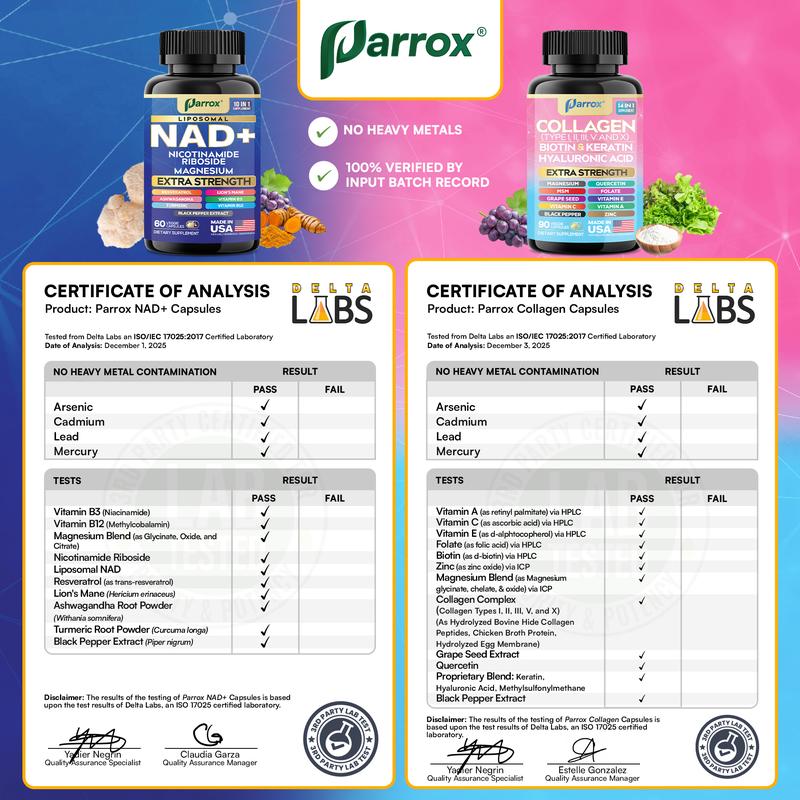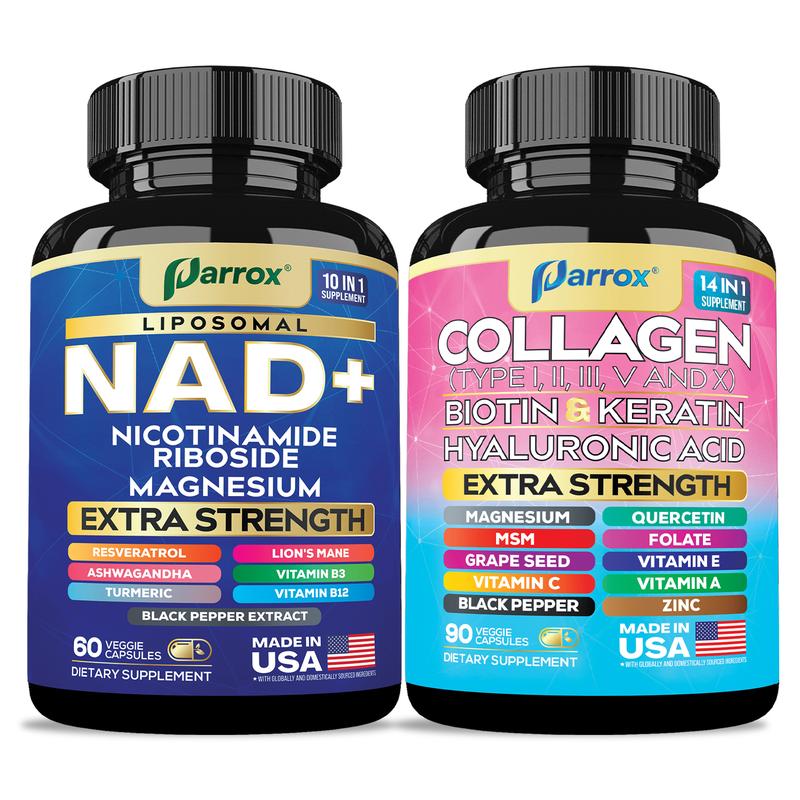 Forever Young Set - PARROX NAD+ & Collagen Healthcare & Dietary Supplement Combo for Extra Skin Aging Support, Hair Health, & Overall Wellness - Made in USA