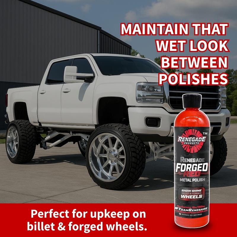 Forged Red Metal Polish is tailored for forged or billet aluminum wheels. It cleans, shines, and protects your wheels, maintaining a polished, wet look. The mild abrasive is safe for softer aluminum. It prevents oxidation and UV damage, leaving a clean, shiny finish.