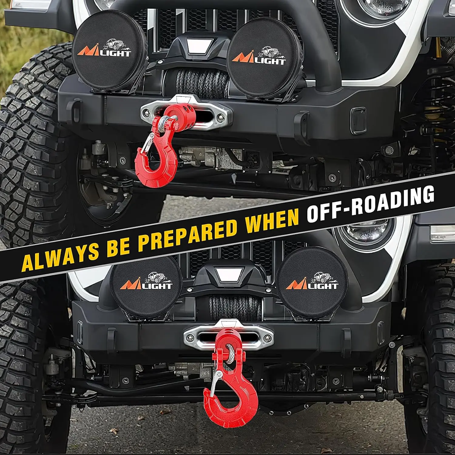 ·【DURABLE MATERIAL】-The Winch Hook is made in solid forged steel, the surface treatment adopts e-coat finish + powdered coat protection, which maximizes the durability of the winch hook and prevents rust and corrosion.