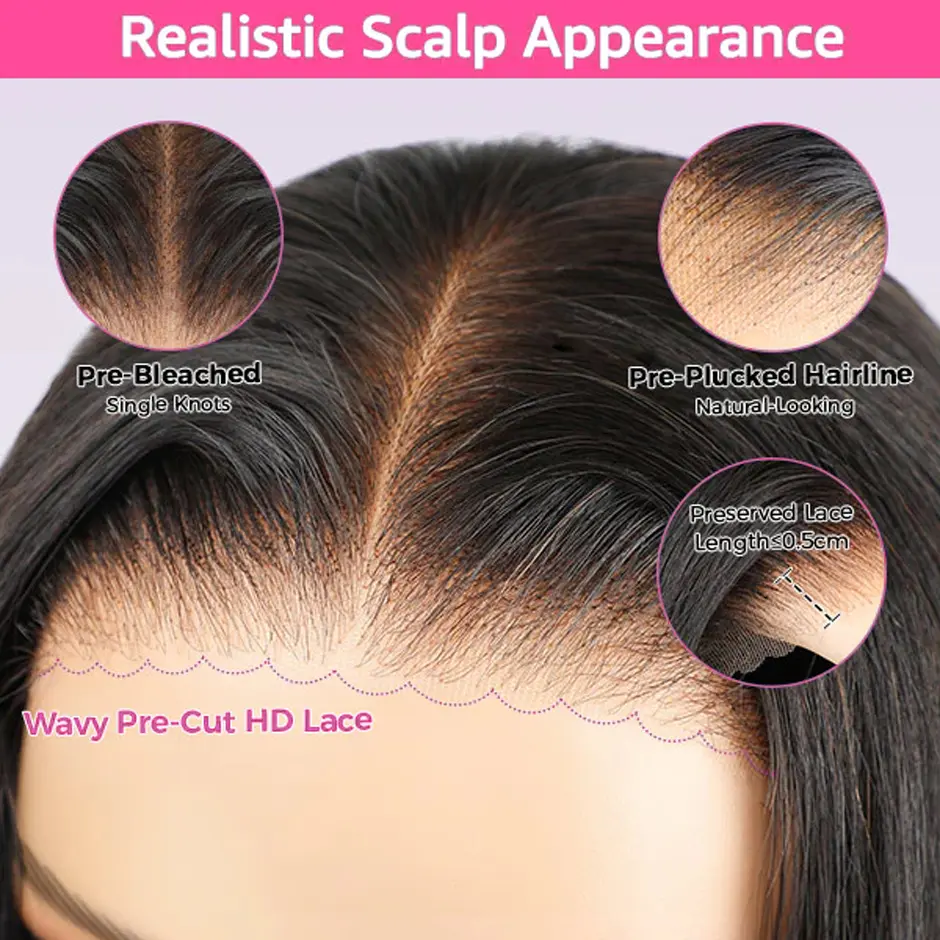 ·Glueless Hair: No glue required. Easy to wear.