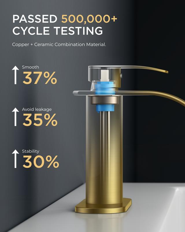 🔧 Tested through 500,000 cycles: Resists hard water. Smooth handle control ensures drip-free operation. Flow rate: 1.2gpm/4.5L/min at Max 60psi. 🚰