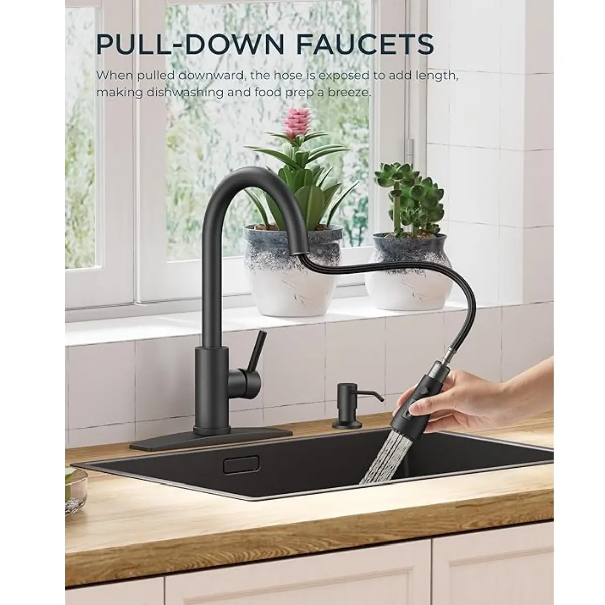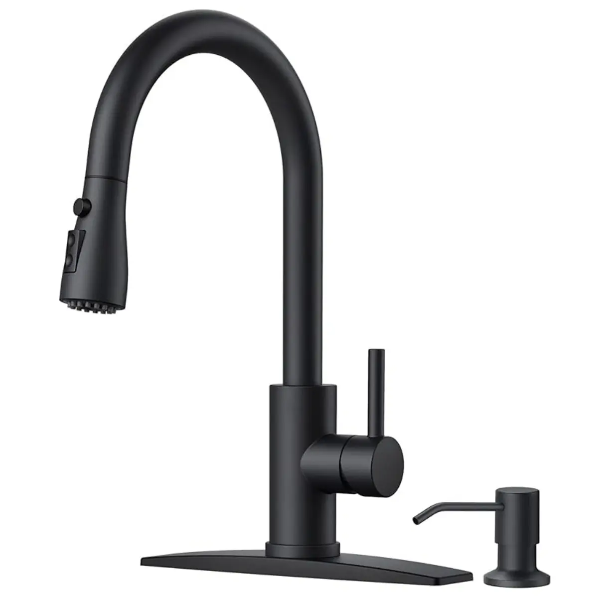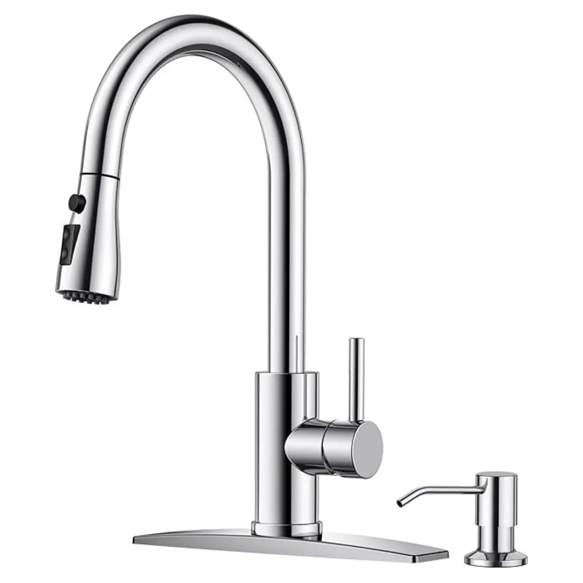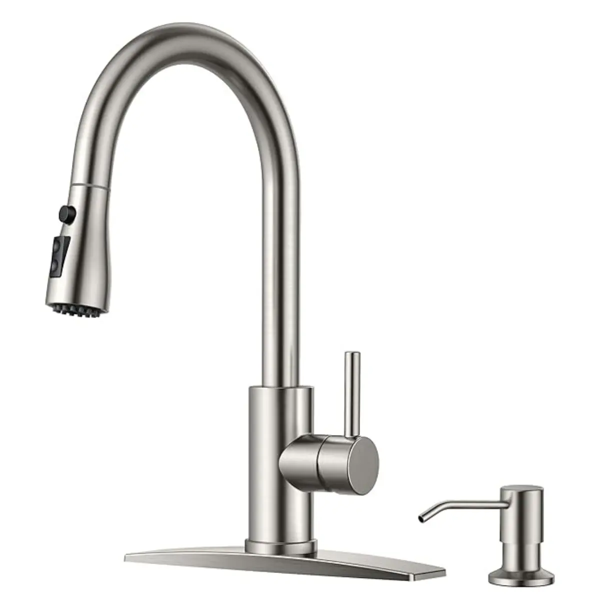The FORIOUS kitchen faucet set includes a 14.76 inch faucet and an 11.83 oz (350 ml) soap dispenser. The versatile dispenser is ideal for hand soap, dish soap and more. This set is designed to meet your kitchen needs perfectly
