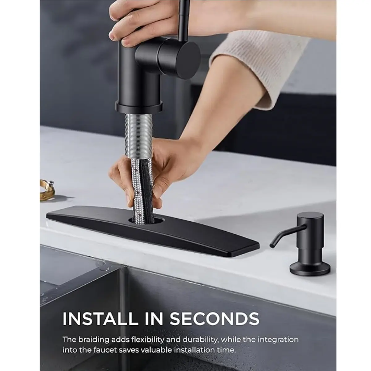 Install our sink faucet effortlessly in under 15 minutes without professional assistance, it includes a 10-inch detachable deck plate for one or three holes kitchen sinks, and all Mounting hardware for a hassle-free setup