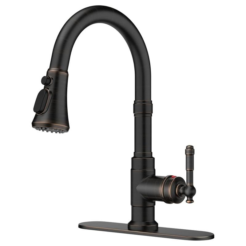 Forious Vintage Kitchen Faucet, Pull Down Sprayer, Oil Rubber Brown, High Arc Single Handle, Antique Stainless Steel, Fits 1 or 3 Hole