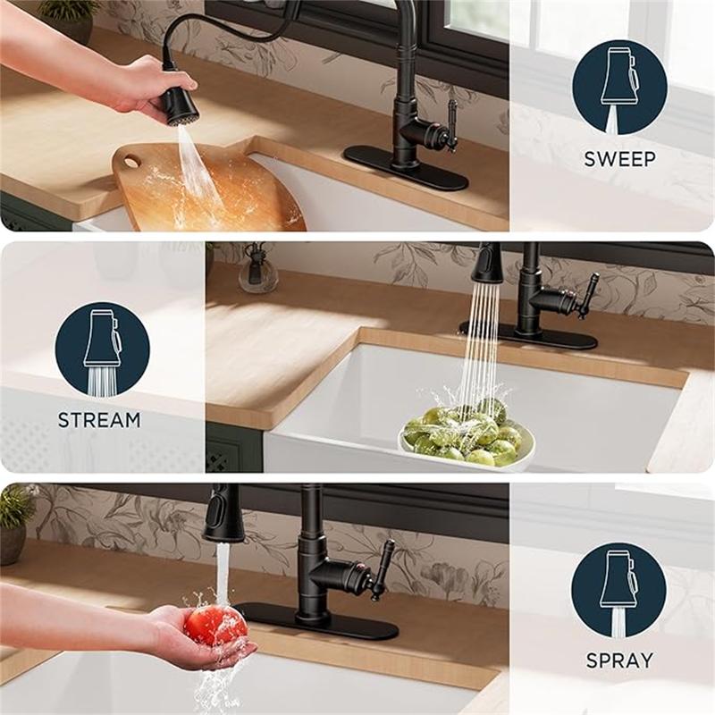 【Versatile Spray Head】💧 Equipped with 3 adjustable flow modes, this faucet is perfect for washing dishes, cleaning produce, or general kitchen tasks. It makes cleaning effortless and efficient! 🍽️