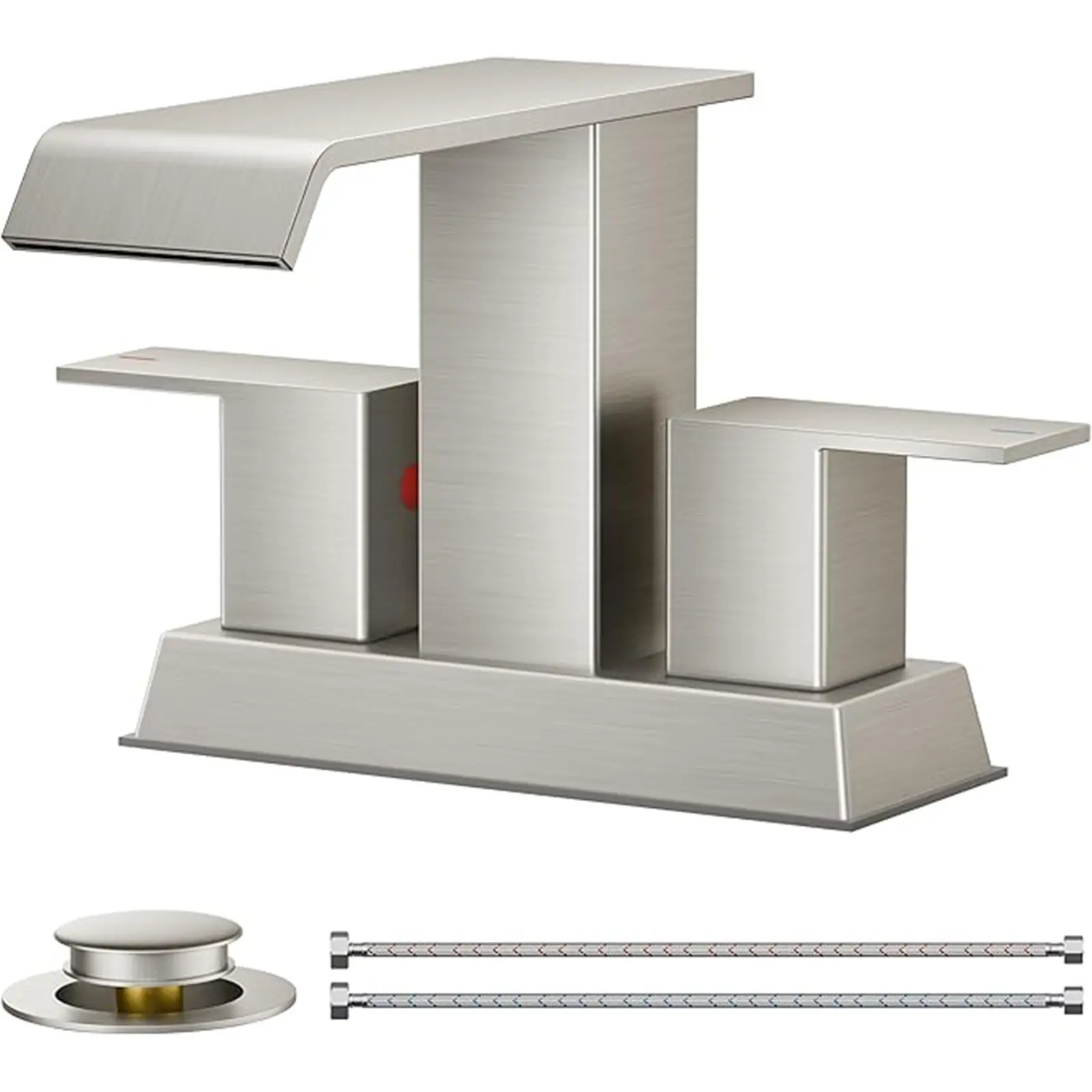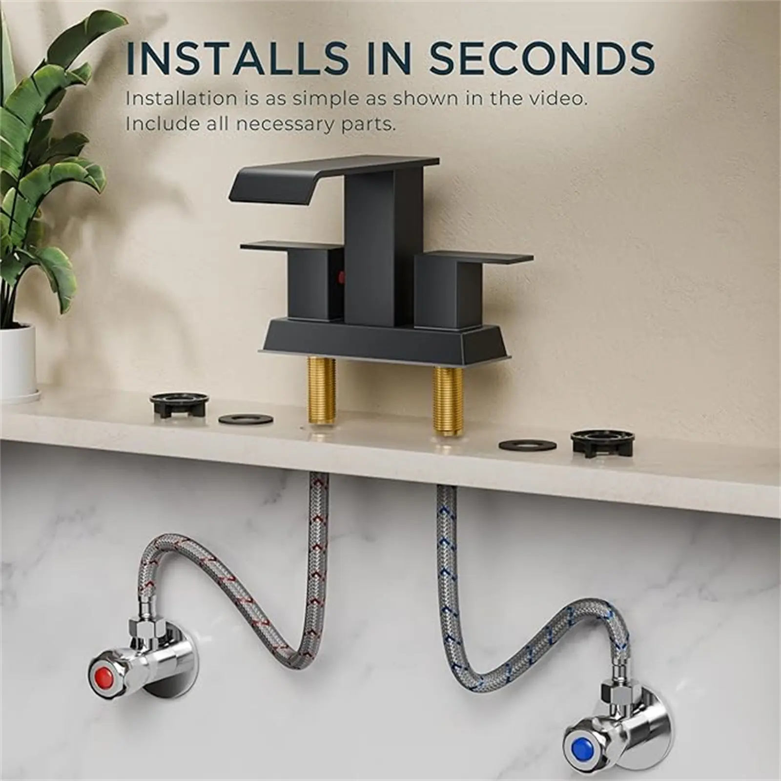 This 4 inch centerset standard design faucet is ready for a quick 15-minute installation. No plumber needed, saving you time and money, and comes with all necessary components for a hassle-free setup.
