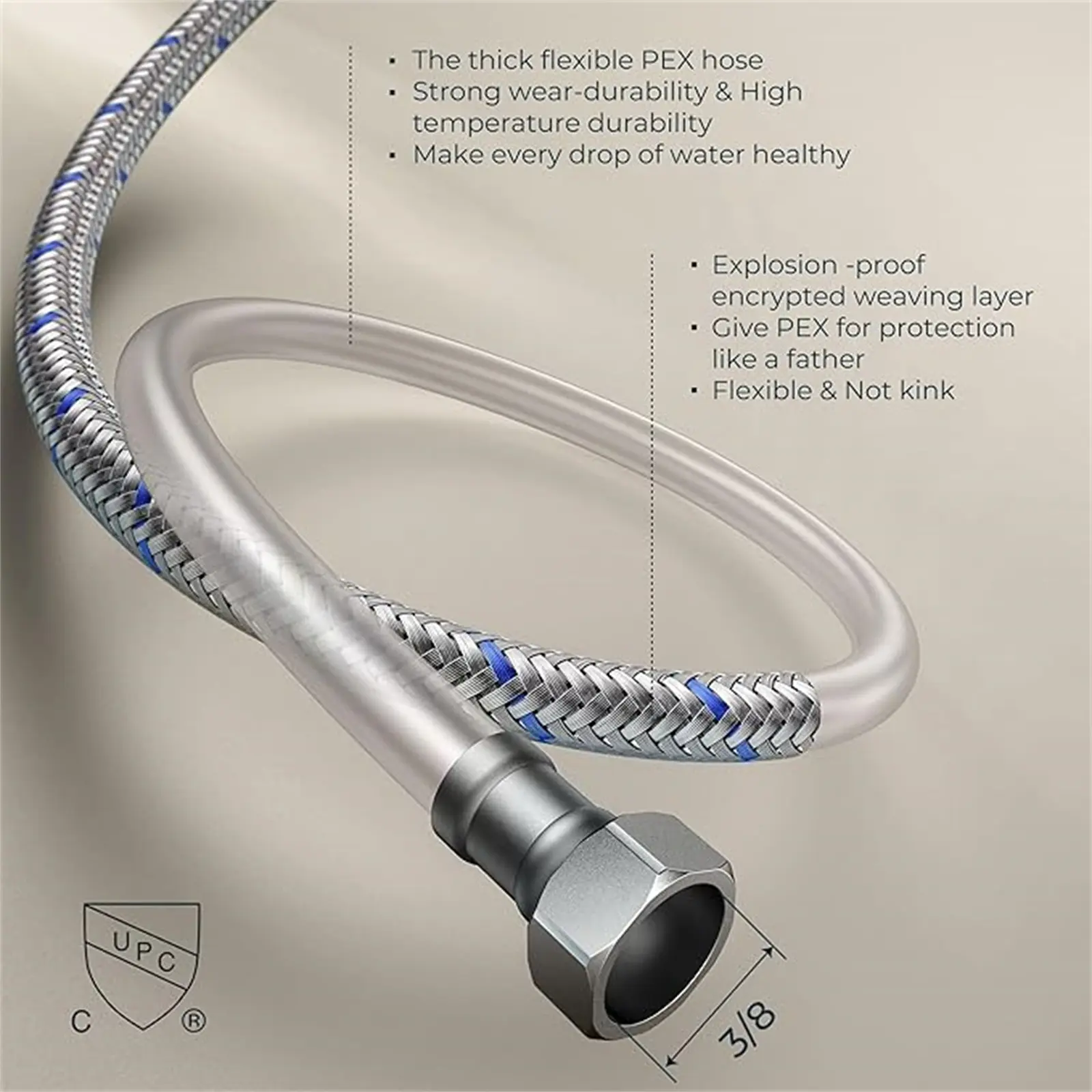 The 24" InnoFlex PEX supply line is braided with flexible stainless steel, making it explosion-proof . It fits standard U.S. plumbing with a 3/8 thread and a built-in rubber ring to prevent leaks.
