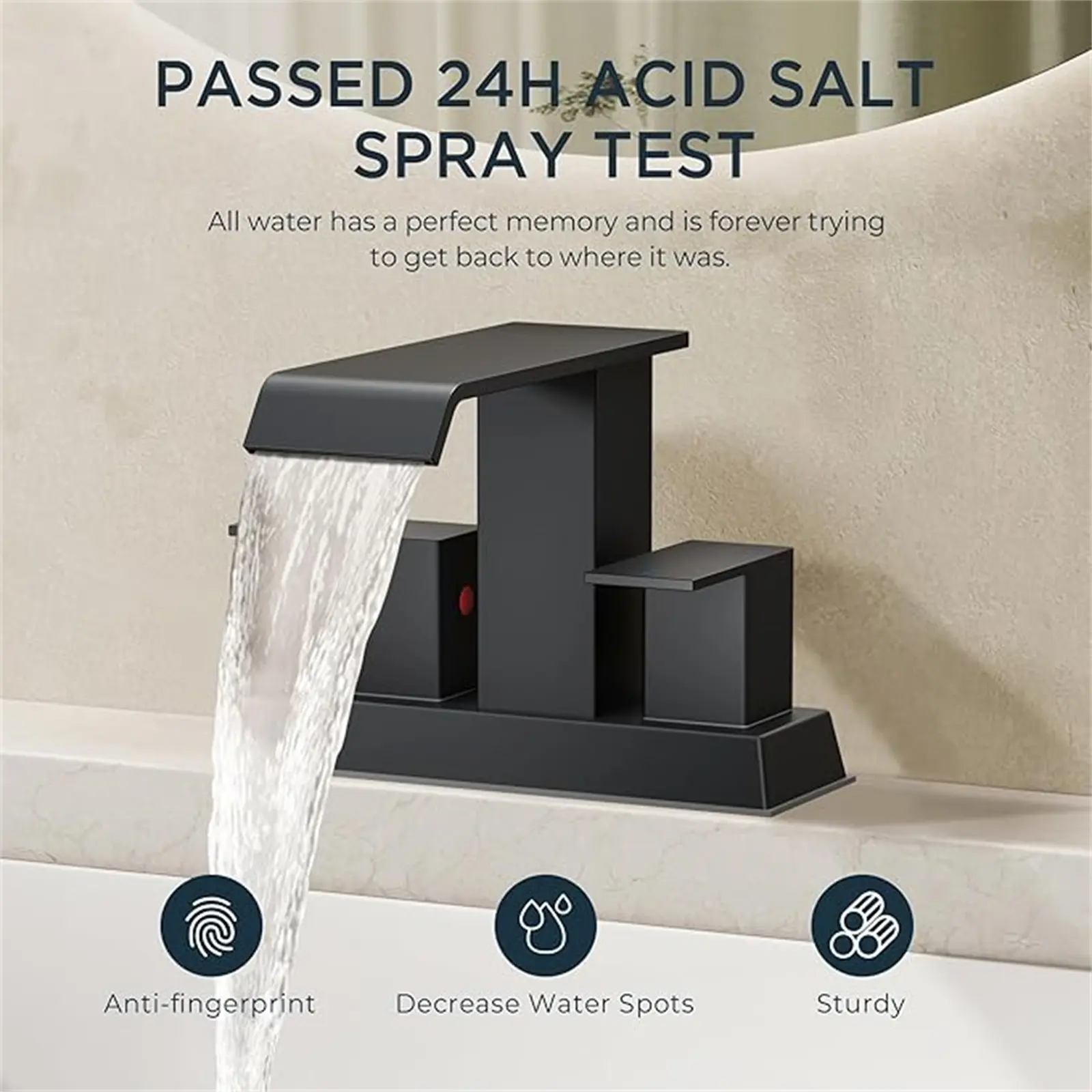 The FORIOUS centerset bathroom faucet is crafted for durability with SUS304 Stainless Steel, suitable for 2 or 3 hole, 4 inch centerset sinks. Its finish withstands a 24-hour acid salt spray test and features anti-rust treatment, ensuring longevity.