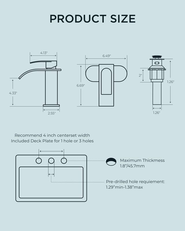 Designed for bathroom faucet 1 hole installations, our 6.49-inch deck plate fits standard sinks perfectly. Video tutorials let DIYers install in minutes—no plumber needed. This faucet ensures hassle-free setup for any bathroom.