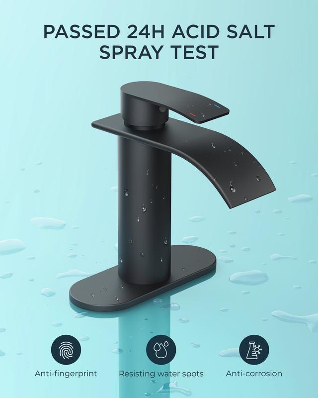 Our bathroom sink faucet features a waterfall spout to reduce splashing. Ideal for compact spaces, it maintains strong flow even with low pressure. Modern style meets practical performance, making it a versatile choice for your bathroom.