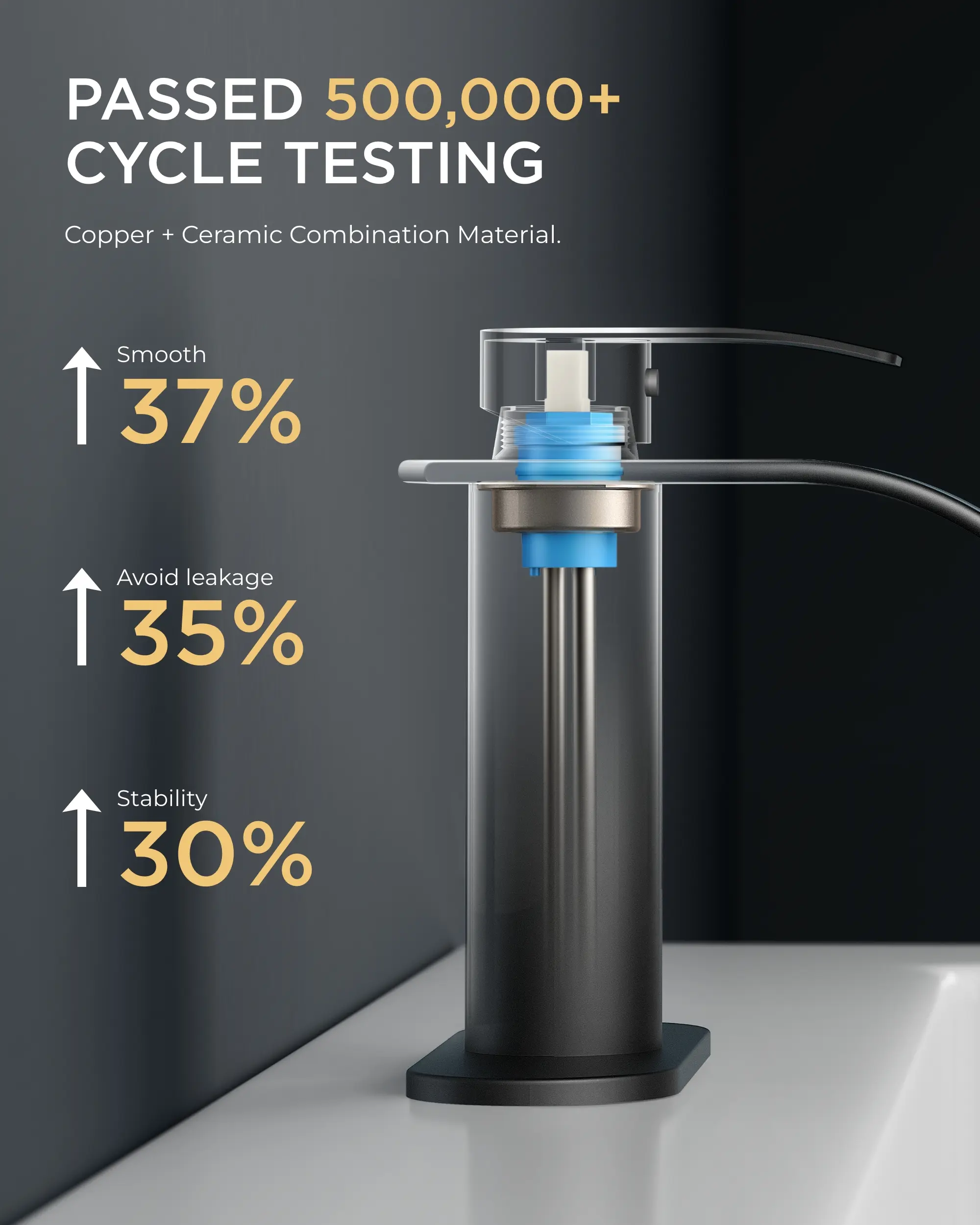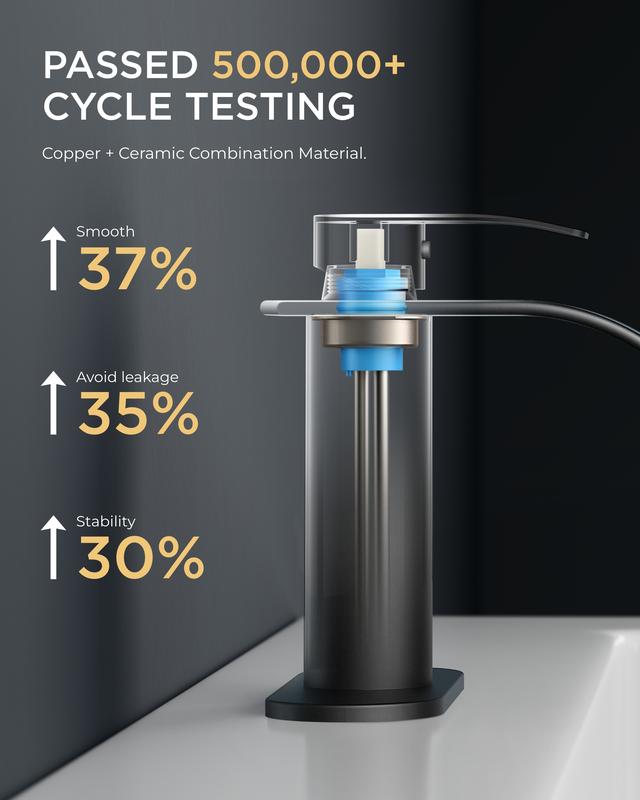 Built with a ceramic cartridge tested through 500,000 cycles, this faucet resists hard water. The smooth handle control ensures drip-free operation for years. Flow rate: 1.2gpm/4.5L/min at Max 60psi.