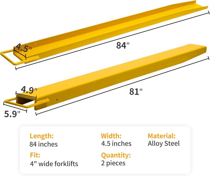 5. YITAMOTOR Forklift Extensions Fits, Heavy Duty Pallet Fork Extension, 72in/84in/96in Length, 1 Pair, Yellow Solution Practical