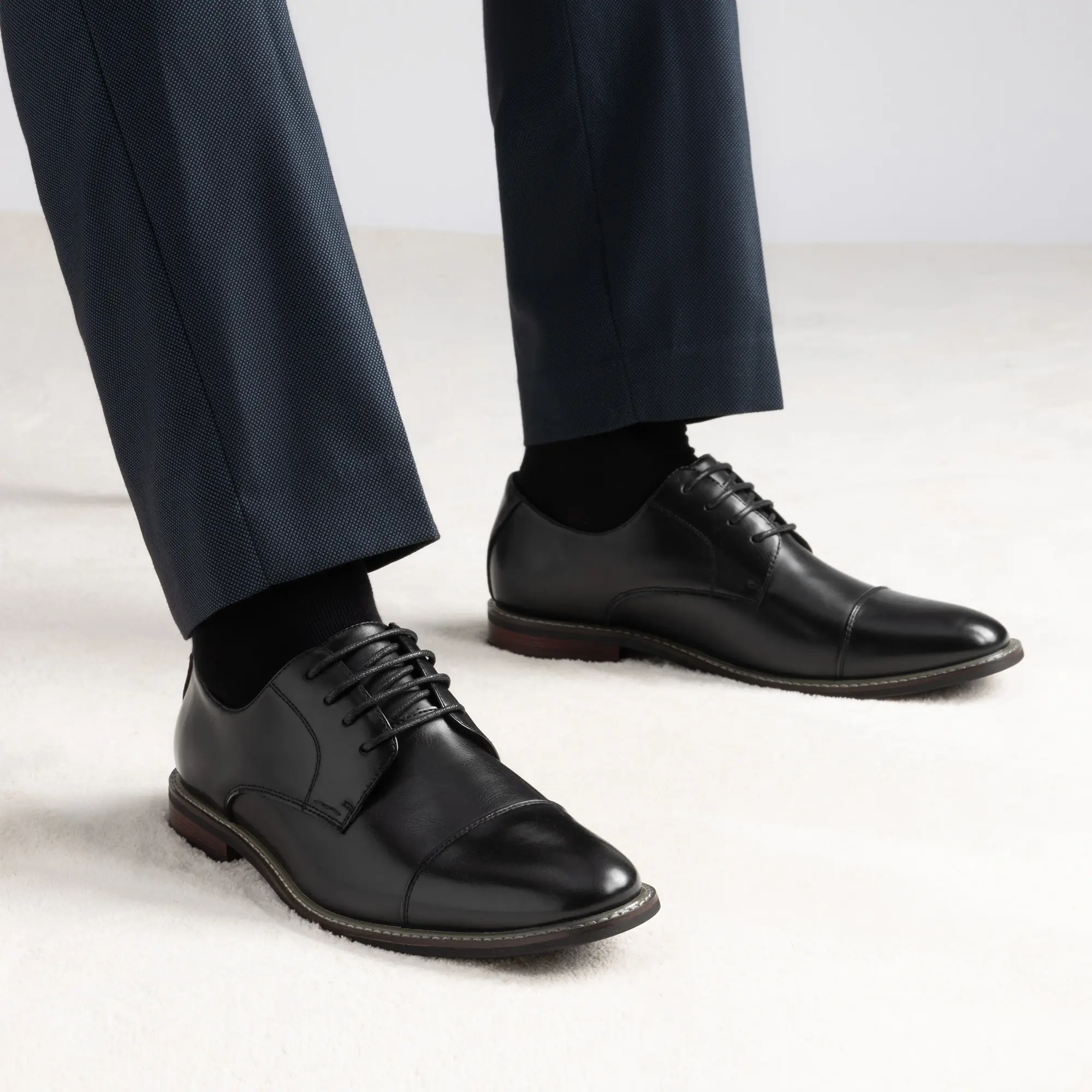 Step up your style with these men’s Oxfords, featuring a smooth vegan leather upper for a polished and sophisticated look. The sleek silhouette makes these men’s dress shoes effortless to  complement any formal outfit, ideal for office wear, weddings, conferences, ceremonies, and other formal occasions. The supportive insole provides enough arch support while alleviating foot fatigue from long periods of standing and walking. Add these fashion Oxfords to your wardrobe and let your style speak.