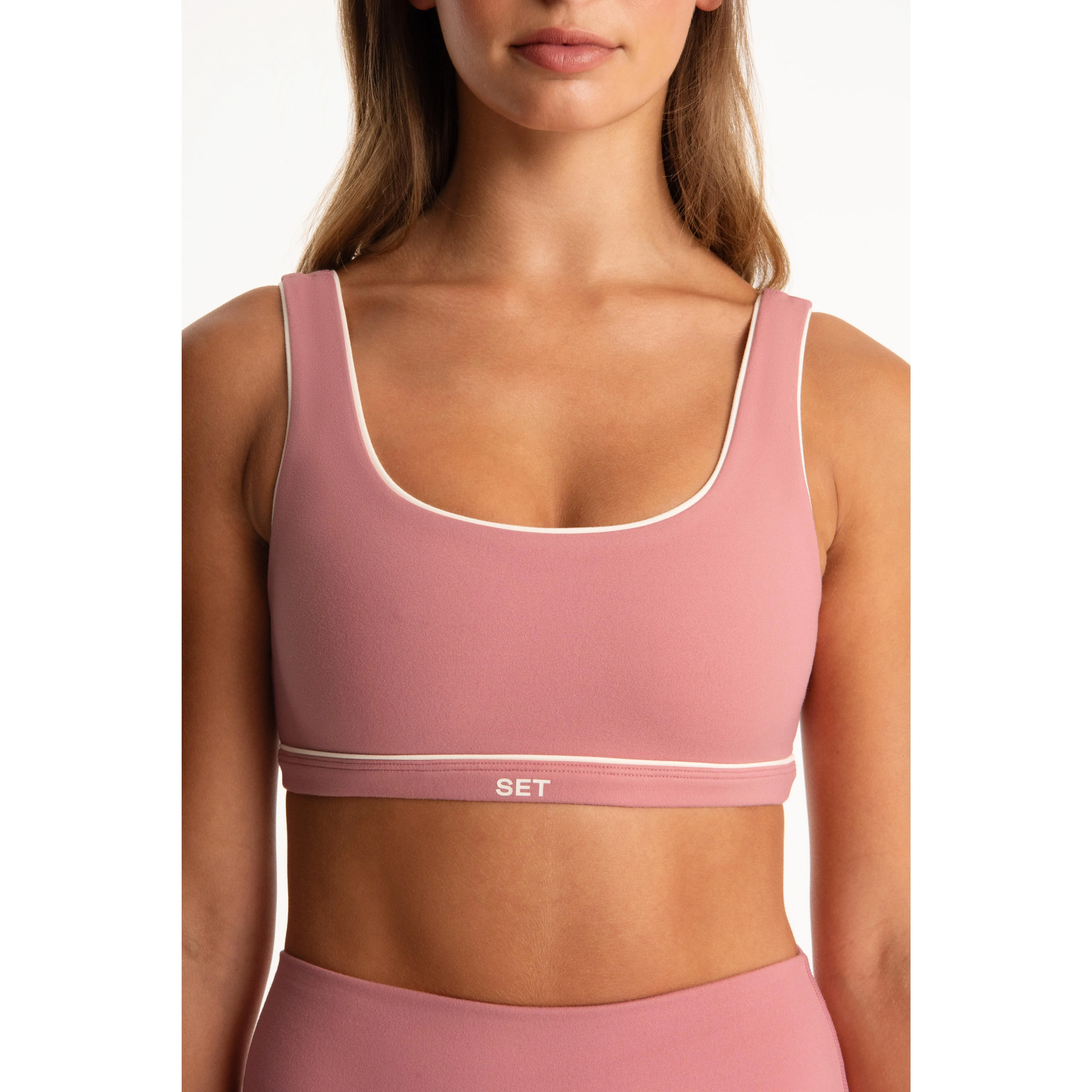 Buttery-soft Formcloud® medium-support U bra with deep scoop neck, contrast piping along edges, and a comfortable, flattering fit.