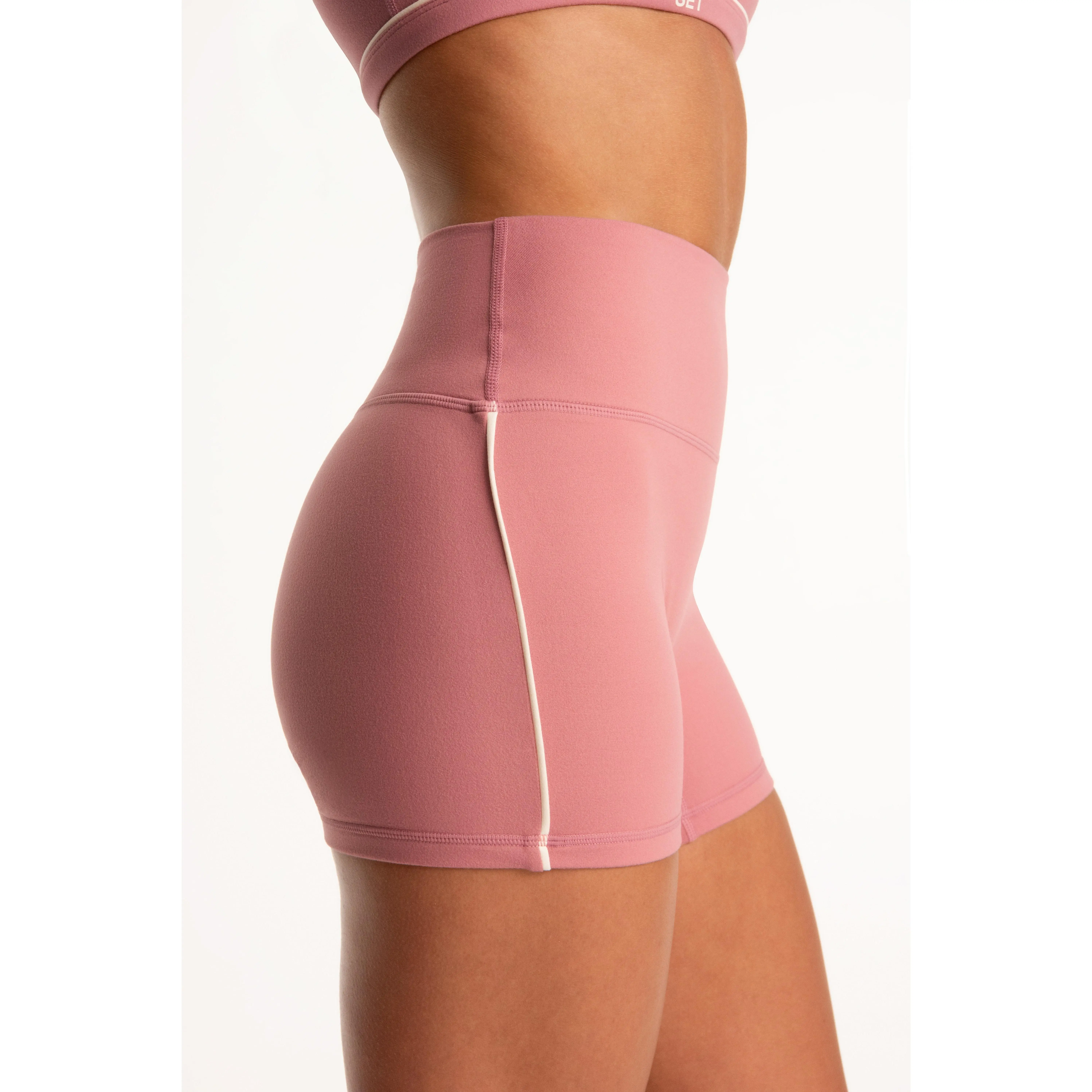 Formcloud® high-rise shorts in buttery-soft fabric with contrast side piping, medium compression, and no front seams for a smooth, sculpted fit.