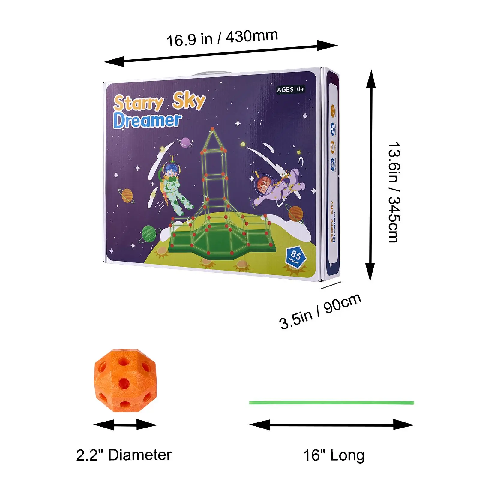 • 85-Piece Fort Building Kit: Explore endless possibilities with our kids fort building kit! It includes 30 solid balls and 55 lightweight yet durable connecting rods. Perfect for kids aged 4 and up to create their own 3D spaces—build forts, tents, pyramids, rockets, and more with parental guidance.