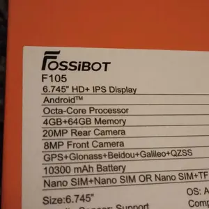 ·ă6.745"HD+ Large ScreenăFOSSiBOT F105 rugged phones gains a 6.745inch HD+ display with tough Dragontrail glass, with resolution of 720 x 1600, Whether you are watching videos or playing games, FOSSiBOT F105 rugged android cellphone provides you with a wonderful and comfortable visual experience and a sensitive screen touch.