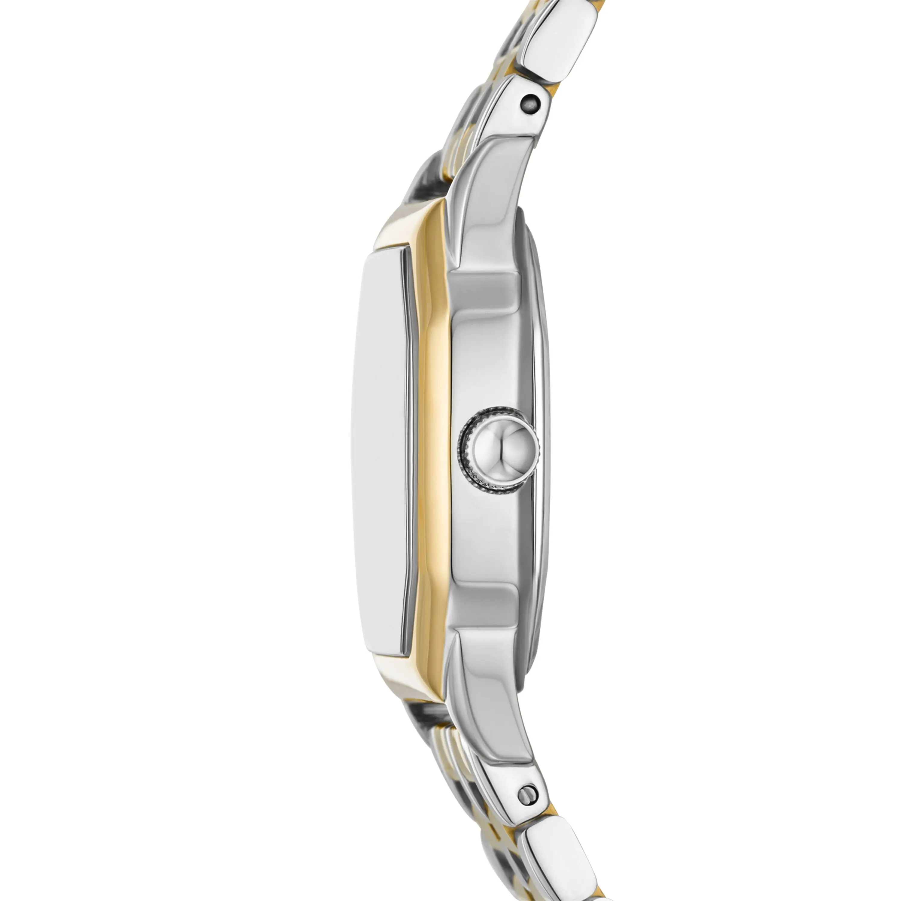 Inspired by a classic archival style, Harlow brings the sophistication of the past to modern day. This intricate polished multi-tone stainless steel five-link bracelet watch features an octagonal-shaped case, textured cream dial and three-hand movement.