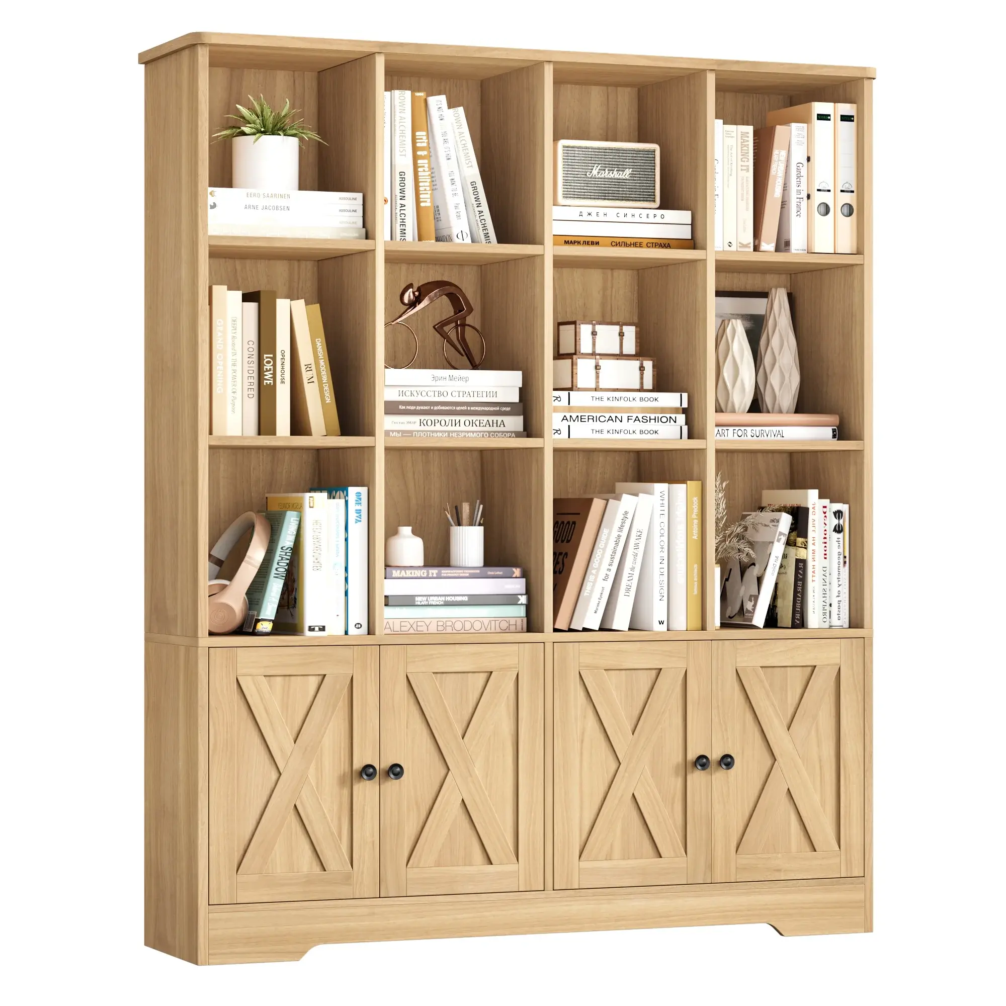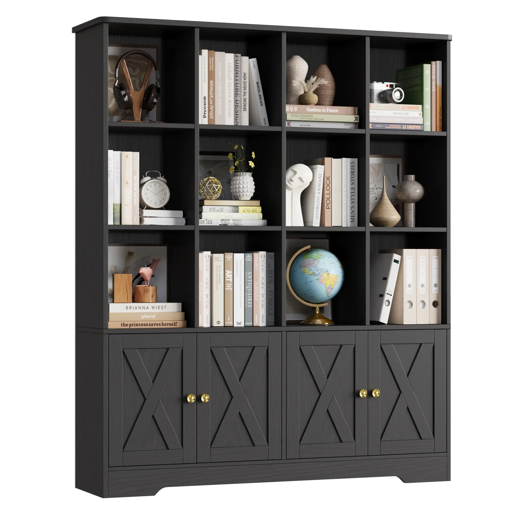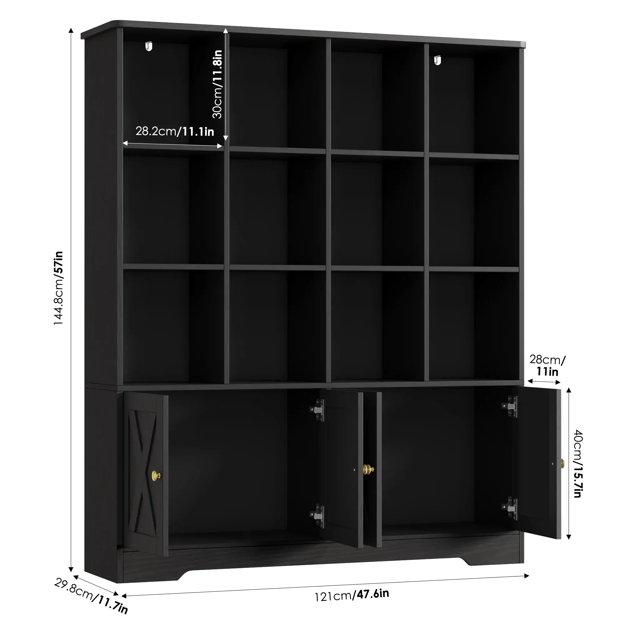 ·【Ample Storage for Various Needs】The spacious tabletop can place a clock or nightlight, 12 open storage cubes make it easy to grab off favorite books, while offering tons of ample open storage space, allow you to tuck away games, puzzles, etc. The book storage organizer with 4 doors is an ideal choice for small rooms that require storage.