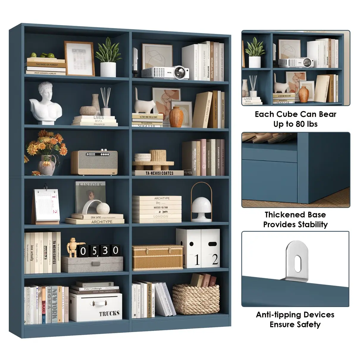 ·6-Tier Design: This bookshelf features a 6-tier double-wide structure, providing ample storage space. 📚