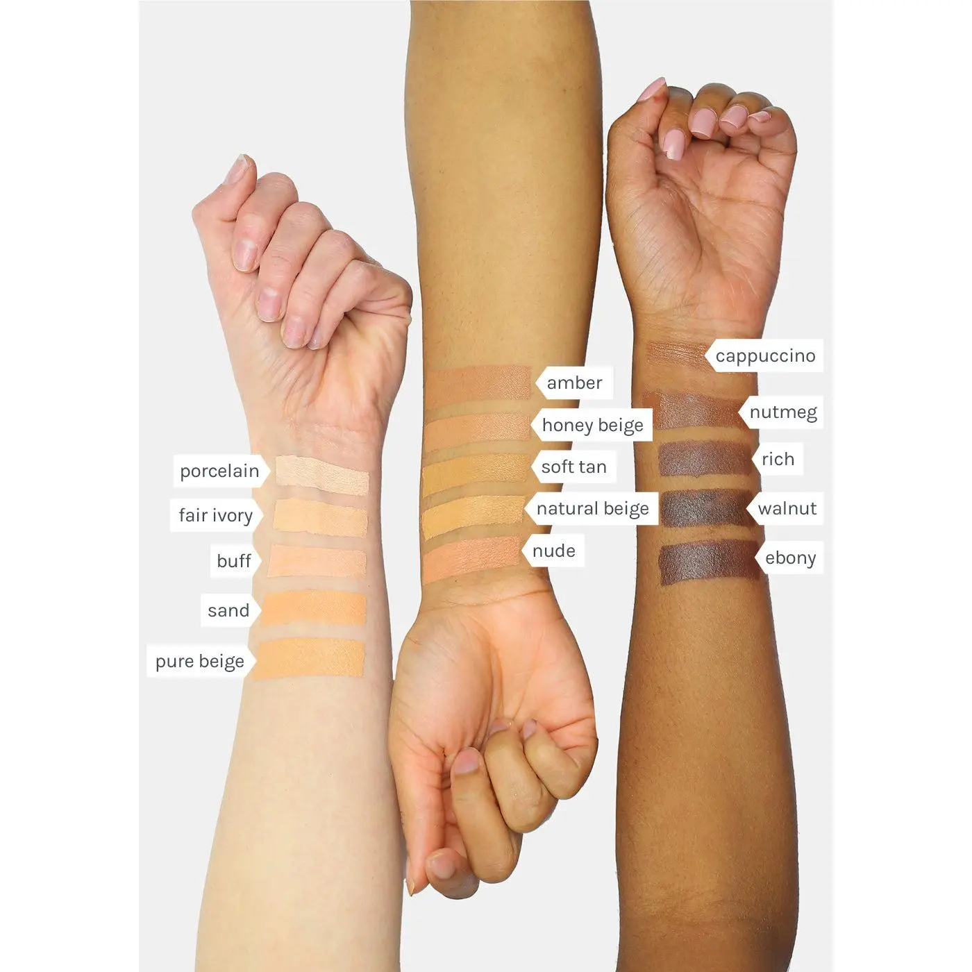 Available in 15 shades so everyone has a match! The shades correlate with our A+ Satin Foundation so you can fine your shade. If you are in between shades pick out one lighter and one darker and mix together!