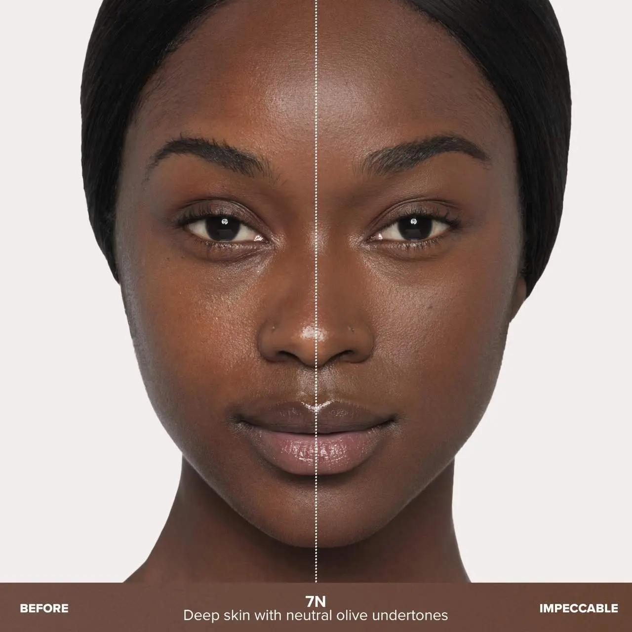 Introducing Impeccable Foundation: a medium to full-coverage, long-wearing formula that blurs pores, fine lines and wrinkles for up to 12 hours. Powered by Precision Blur Technology, this hydrating velvet-matte foundation features Hyaluronic Acid for a smooth, flawless finish and second-skin feel.