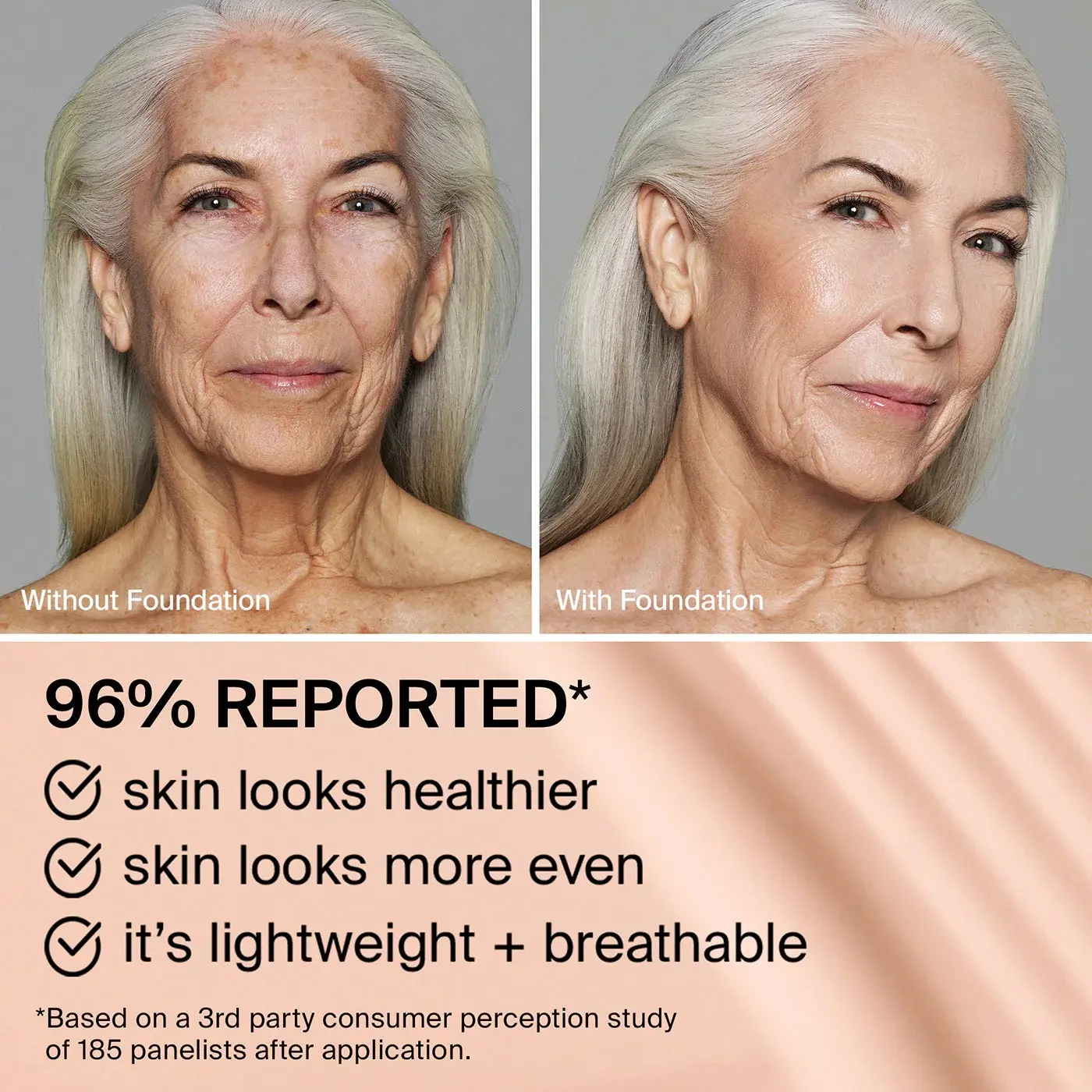 I'm 42 and wanted to try some makeup with skincare built in. I have never had a better match for foundation in my life. I applied the foundation with a brush and it feels wonderful on the skin and evens out everything. I've included pictures of me with and without makeup.