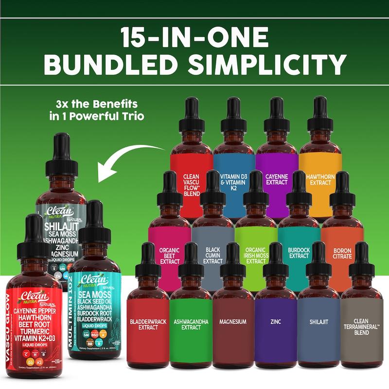 Strengthen your foundation for daily health with the Clean Nutra Foundational Flow Trio — combining Vascu Flow, Multimineral 102 (Sea Moss), and Terramineral. This targeted trio delivers a complete spectrum of support for circulation, mineral replenishment, and immune balance.