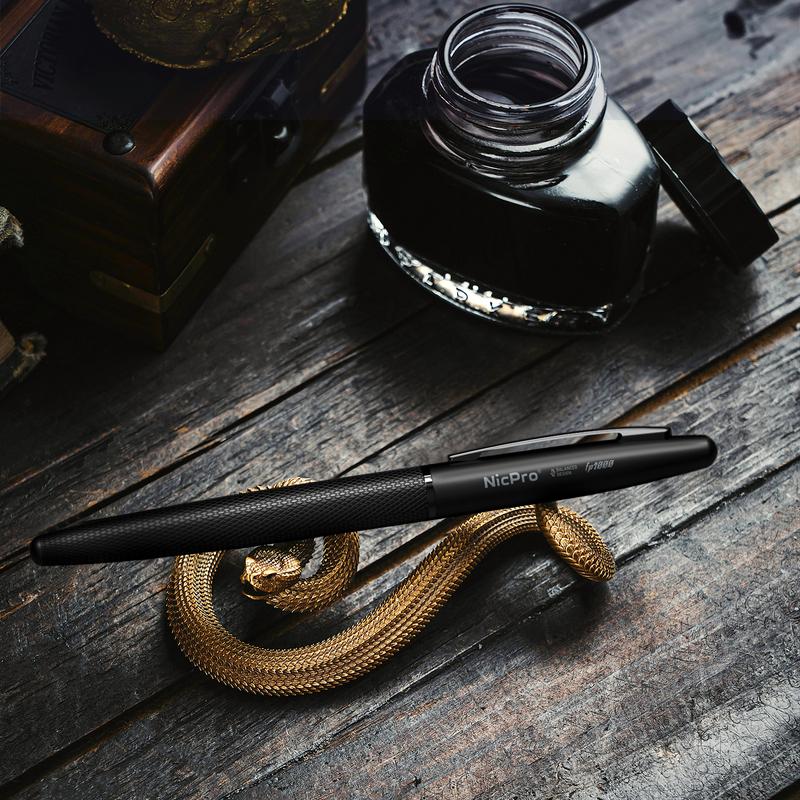 Nicpro calligraphy fountain pen boasts a classic black matte metal design. This combination of luxury and professionalism makes it ideal for professionals, office use, and business. The pen is perfect for men and women seeking a sophisticated writing tool.