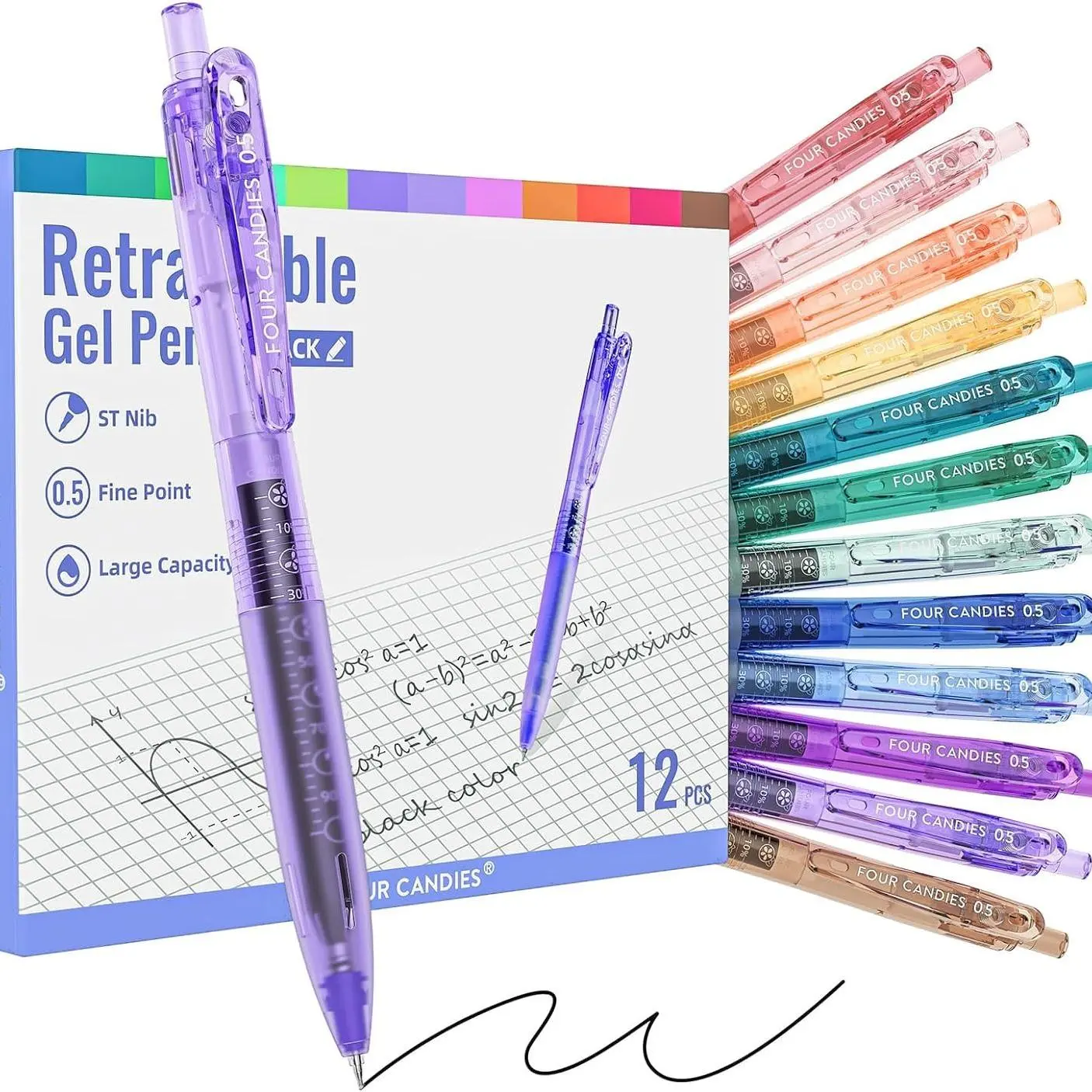🎨 12-Pack Colored Transparent Gel Pens | Precision 0.5mm Fine Tip | Quick-Drying Ink with Visible Ink Level
