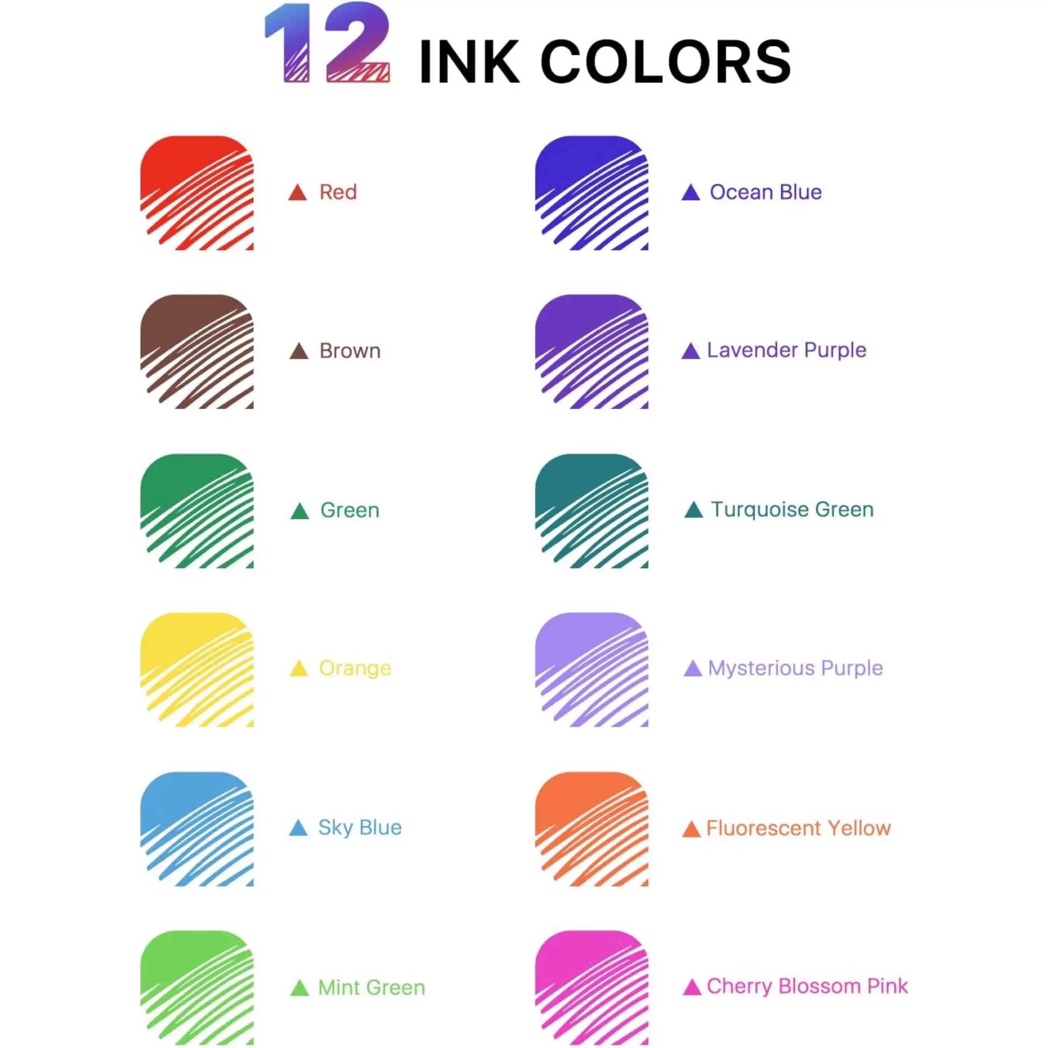 ·🌈 12 Vibrant Colors in one set. Includes 12 uniquely colored transparent gel pens, each with matching ink and body color. Perfect for journaling, note-taking, drawing, coloring, and creative projects. Ideal for students, artists, and professionals.