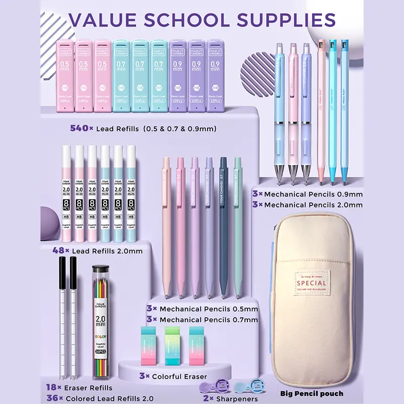 ·16 tubes of lead refills (0.5mm, 0.7mm, 0.9mm, 2.0mm, and colored refills).