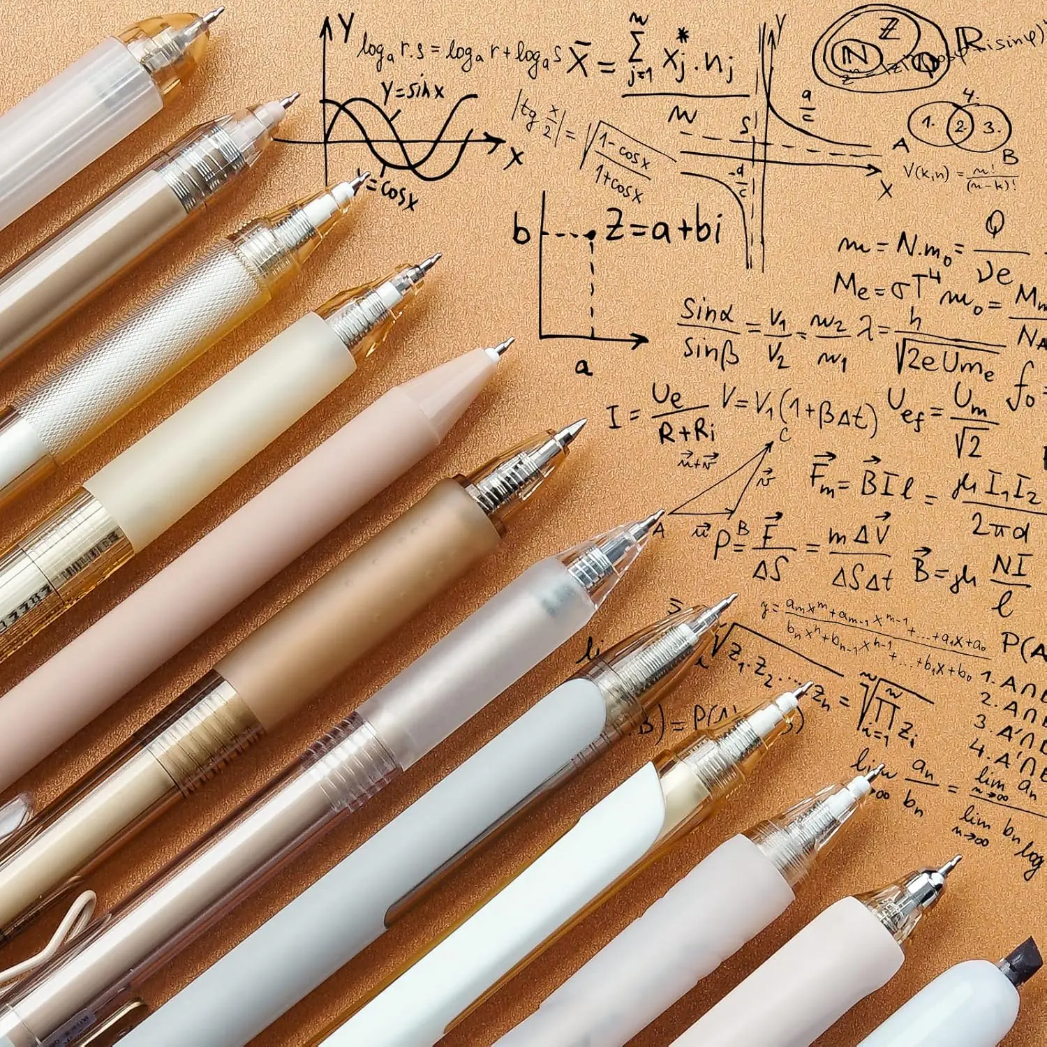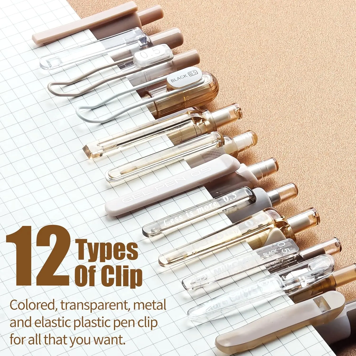 ·A curated set of 12 chic neutral pens in stylish beige/brown tones. 🖋️
