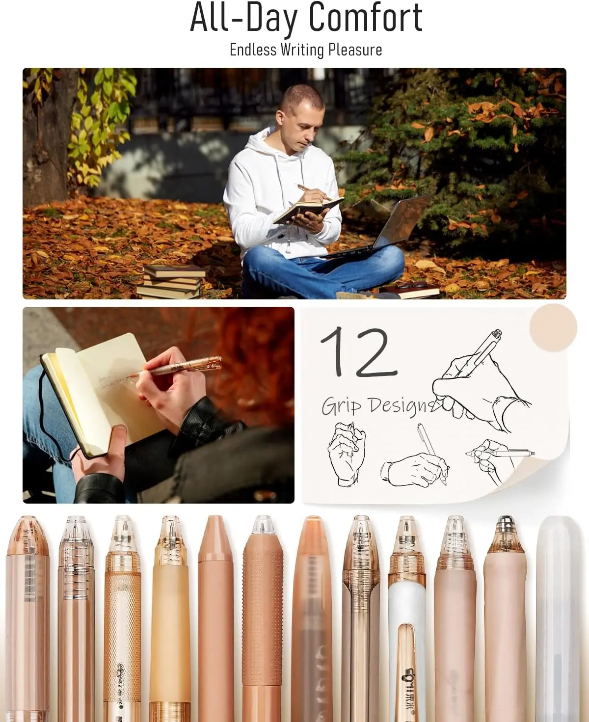 ·Each pen features a unique textured grip to reduce hand fatigue. 🌟