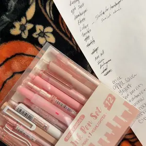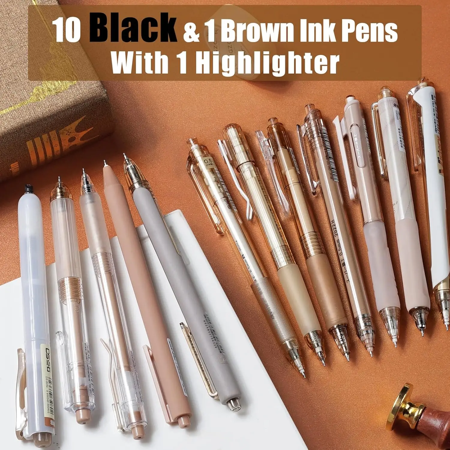 ·Blends seamlessly with minimalist decor. Includes 10 black gel pens, 1 brown ink pen, and a matching highlighter. 📝