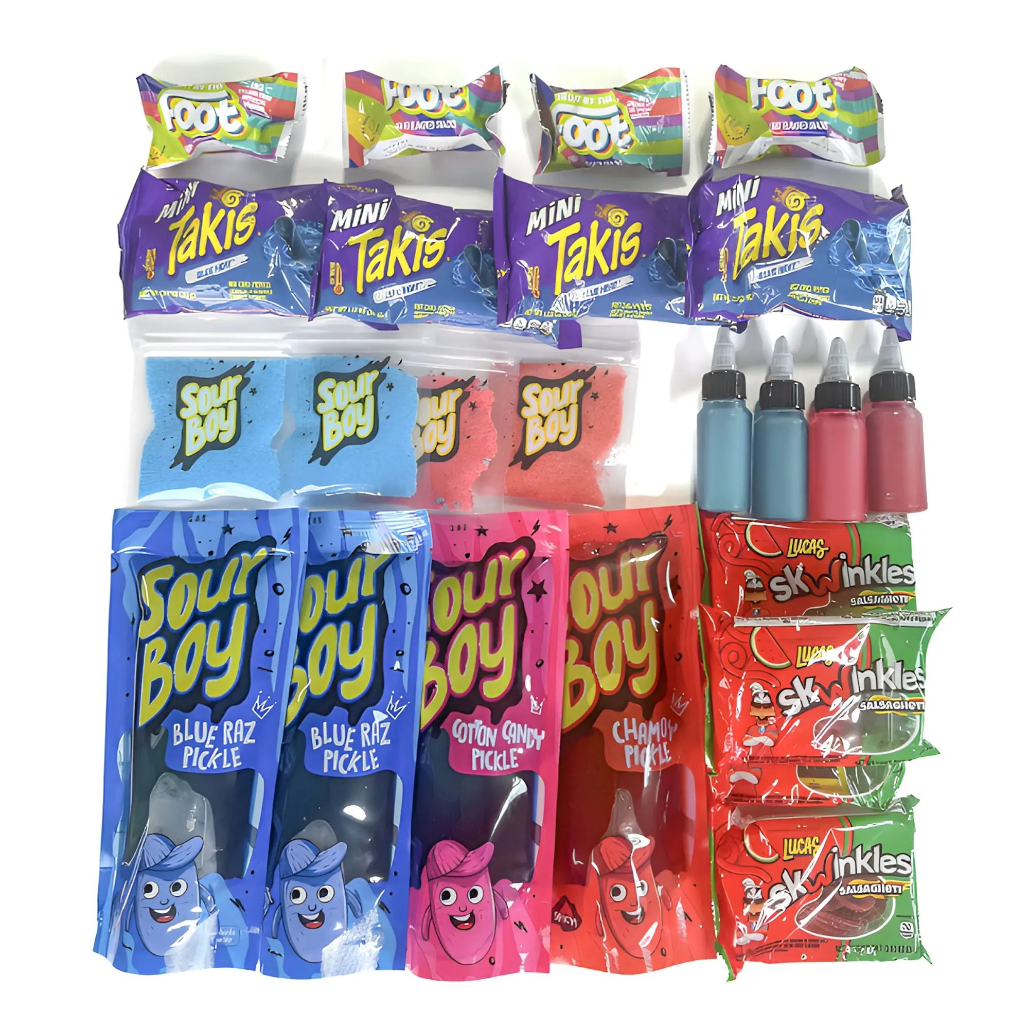 Would’ve rated it 5 stars but the skwinkles are OLD and clumped together and HARD! Pickle and candy powder were the best! Blue razz tasted good.