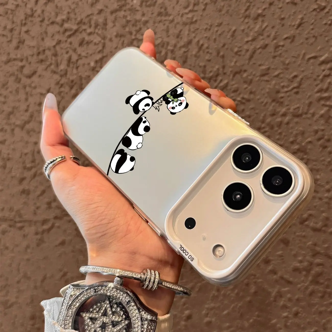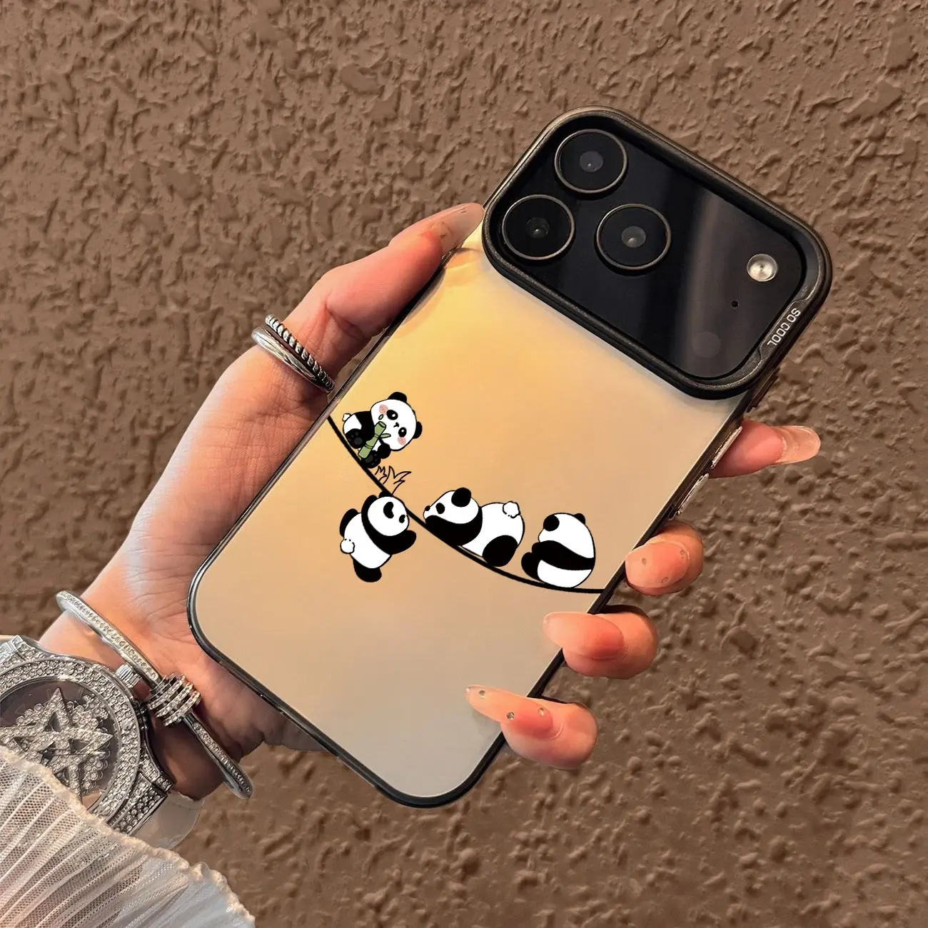 Four pandas Pattern Case for iPhone 17 Pro Max 17 Air 16/15/14/13/12/11 Pro Max XR XS E Plus Retro High-end Shockproof Drop Screen Protection Cute Durable PC Smartphone Cover