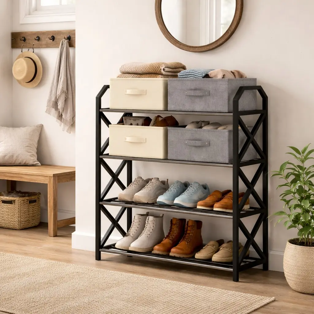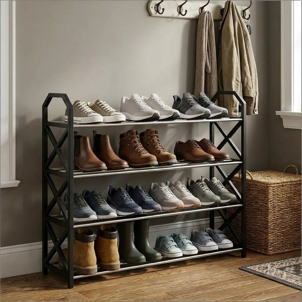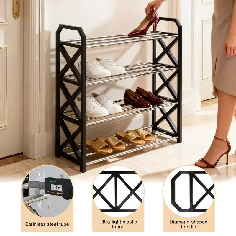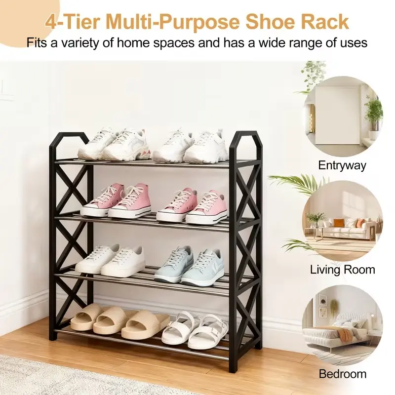 ·Four-tier design: Manages shoe storage effectively.