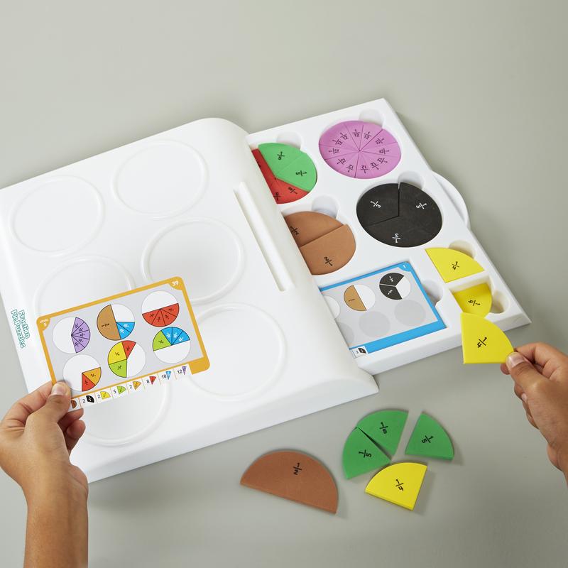 ·Includes game board, 50 leveled puzzle cards, 65 foam fraction pieces, guide, and solutions.