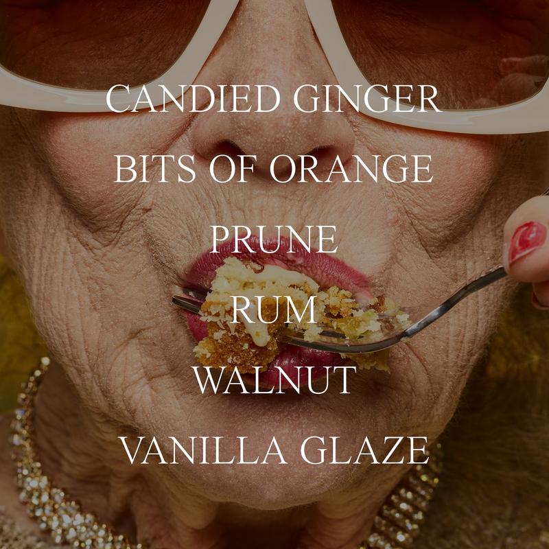Not your dusty old Aunt’s fruitcake. This is boozy, fruity, a bit spiced, a wee bit naughty. Such a fun and mischievous fragrance!