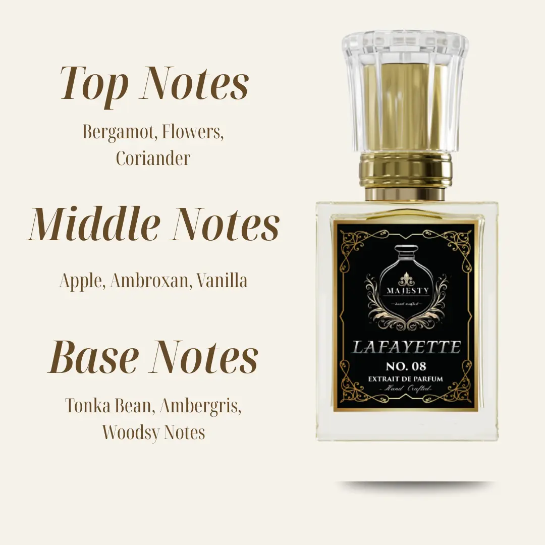 Lafayette, an inspiration of Lafayette Street that lasts 8-10 hours on skin and clothing with a 50% oil concentrated base. It is a versatile, polished scent that works beautifully year-round and transitions effortlessly from day to night. Its fresh citrus and crisp apple opening make it ideal for daytime wear, work, casual outings, and city strolls, while the creamy vanilla and warm amber-wood base bring a rich, confident edge suited to evenings, date nights, and social events. It’s a style-friendly, approachable fragrance that feels timeless, elegant, and well-balanced in almost any setting