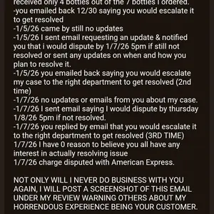 The most incompetent company I've ever dealt with 34 yrs on this earth. Screwed up my christmas order nvr fixed it after reaching out multiple times, see email attatched.once negative reviews hit they offered to make it up w some free bottles,I accepted and sent me wrong ones and sizes.WTAF majesty?
